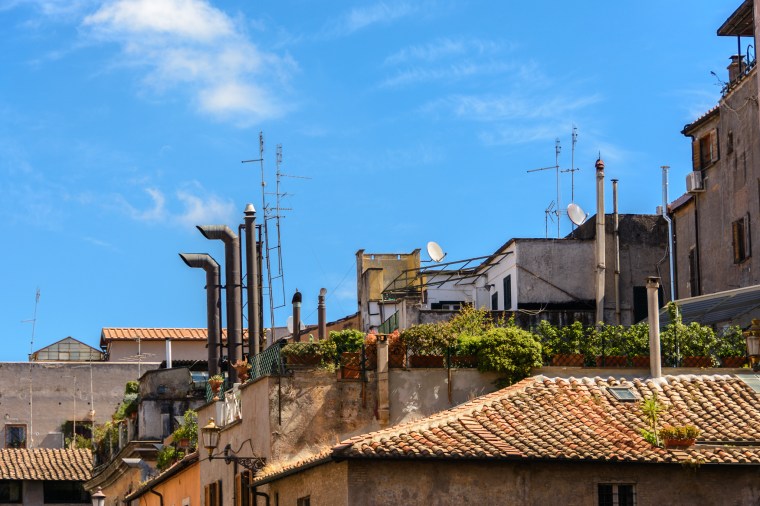 Här var det många rör som sticker ut 🙂 Fint med den blå himlen och känslan av en äldre stadsdel som bilden förmedlar.
