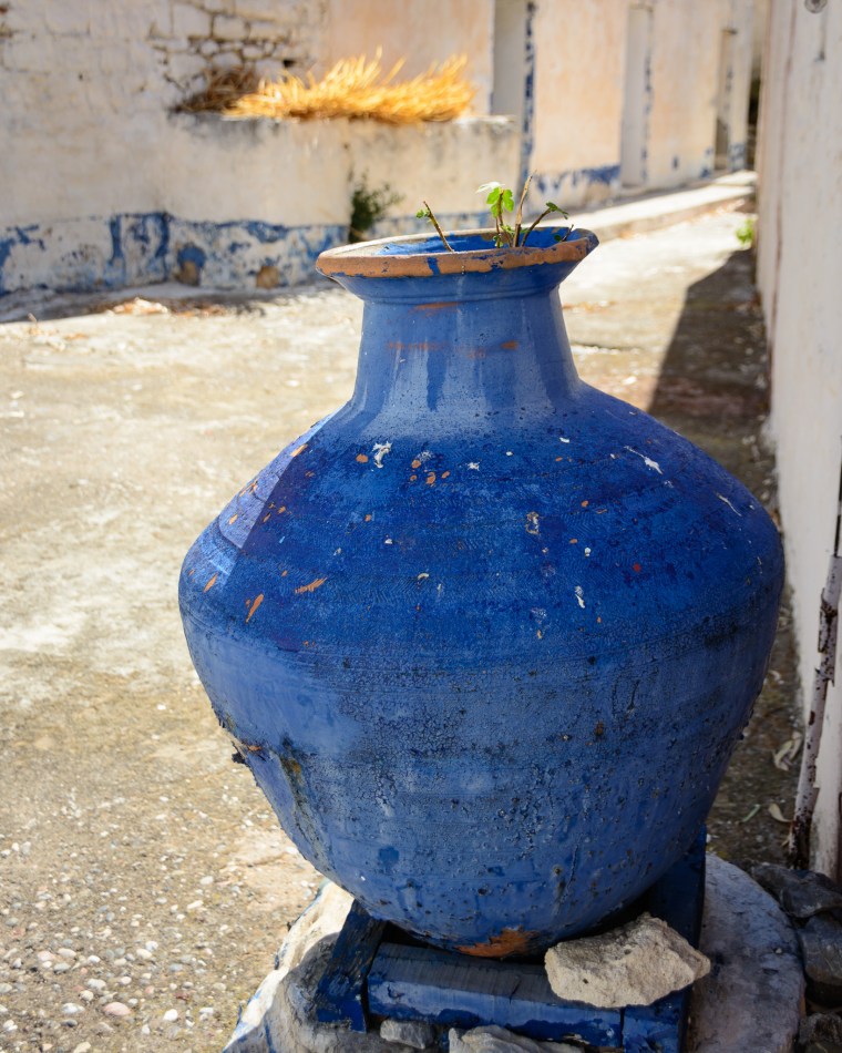 Upptäckte urnan i vad som förmodligen varit ett gammalt kloster och som nu föreföll vara på väg att restaureras. Fastnade för färgen och kontrasten mot det gulnade gräset i bakgrunden.