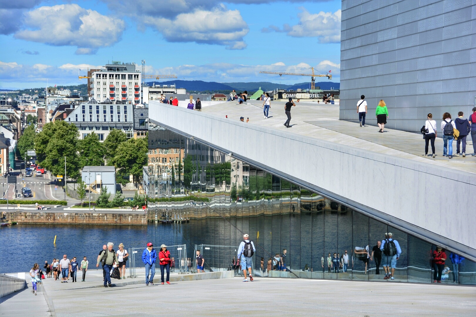 1. Det är en häftig byggnad. Se den om du är i Oslo. Den har så många linjer och reflekterande ytor och så går man på taket i flera etage.