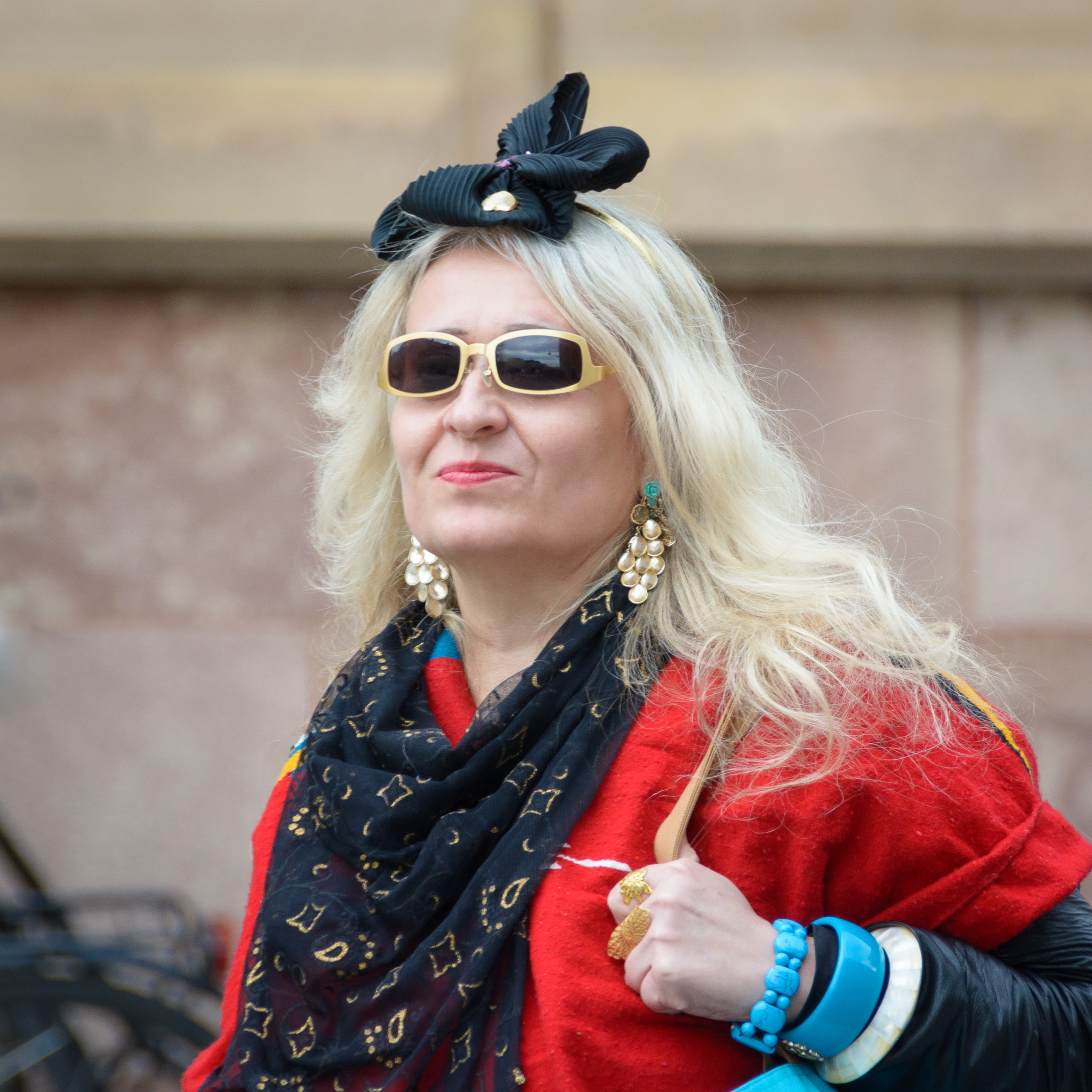 1. En väldigt utpräglad och tydlig attityd!! Något i den pråliga utstyrseln med stora klatschiga, i mitt tycke anskrämliga ”smycken” tillsammans med det självsäkra ansiktuttrycket får mig att tro att det är en man i kvinnokläder och peruk 🙂 Bortsett från det, ett väldigt bra foto!!!