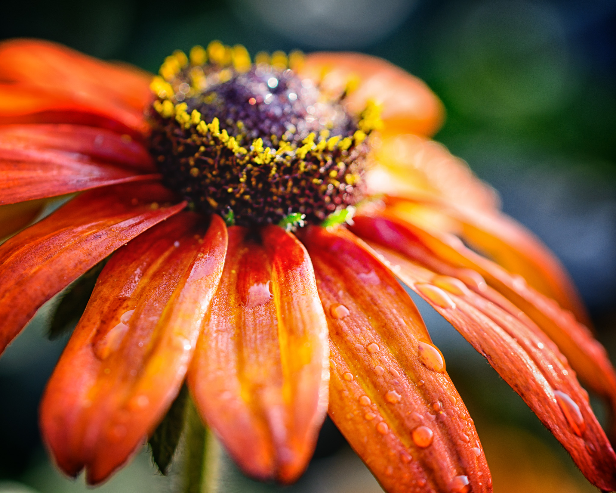 Vacker med mustiga färger, skärpan fint på dropparna.