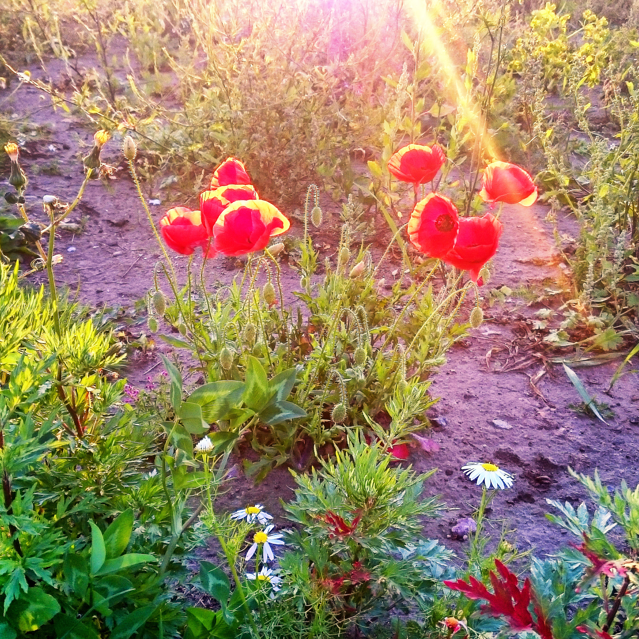 Även om jag ofta har kameran med mig, så finns det tillfällen när den inte är med. Då är det bra med mobilen så man kan fånga ögonblicket. Som i det här fallet, under en morgonpromenad, när den uppgående solens strålar träffar vallmon, som fortfarande blommar här och var 🙂