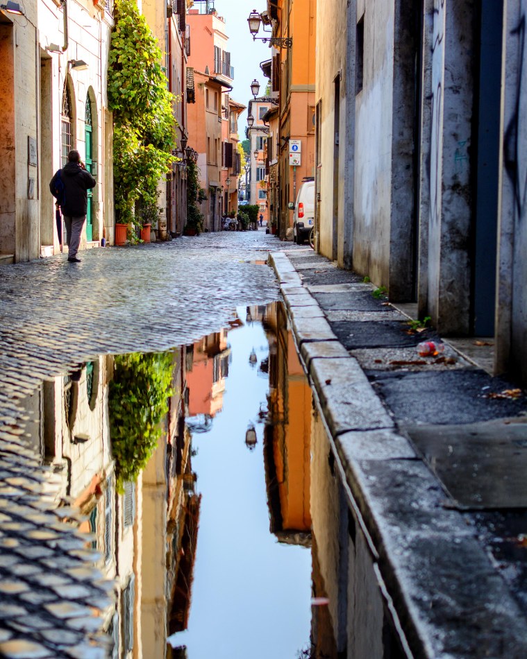 Perfekt till temat, snyggt med byggnadernas färger mot gatstenarna.
