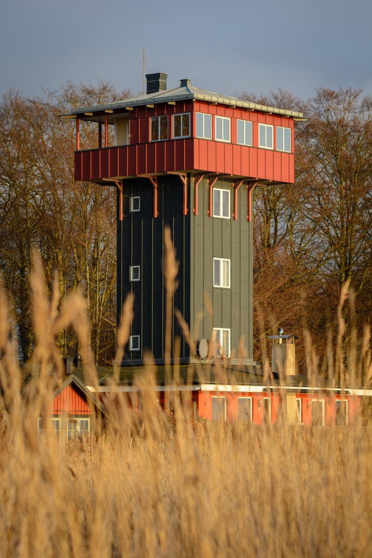 Spännande byggnad och snyggt komponerat med vassen i förgrunden! 🙂