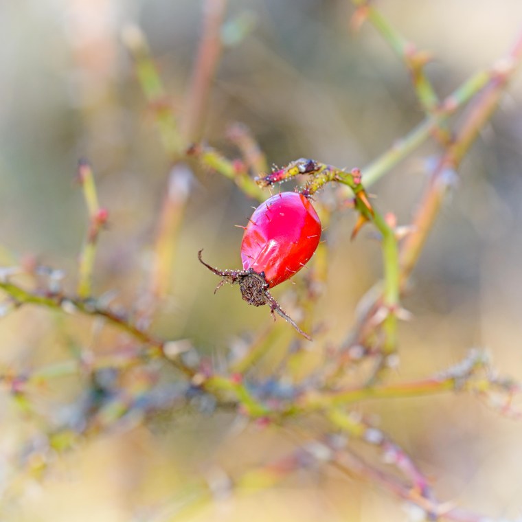 Jättefin! Jag gillar valet av skärpedjup, att man ser grenarna fast suddiga! Också härlig färg och skärpa på nyponet.