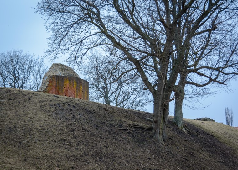 Det sluttar väldigt mycket och själklart kan jag inte låta bli att undra vad det är som syns däruppe. Ser ut som en stor stenhög med en tegelmur framför sig, kan vara något gammalt.