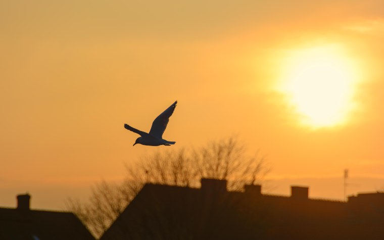 Snyggt med byggnadens siluett och fågeln där ovanför…