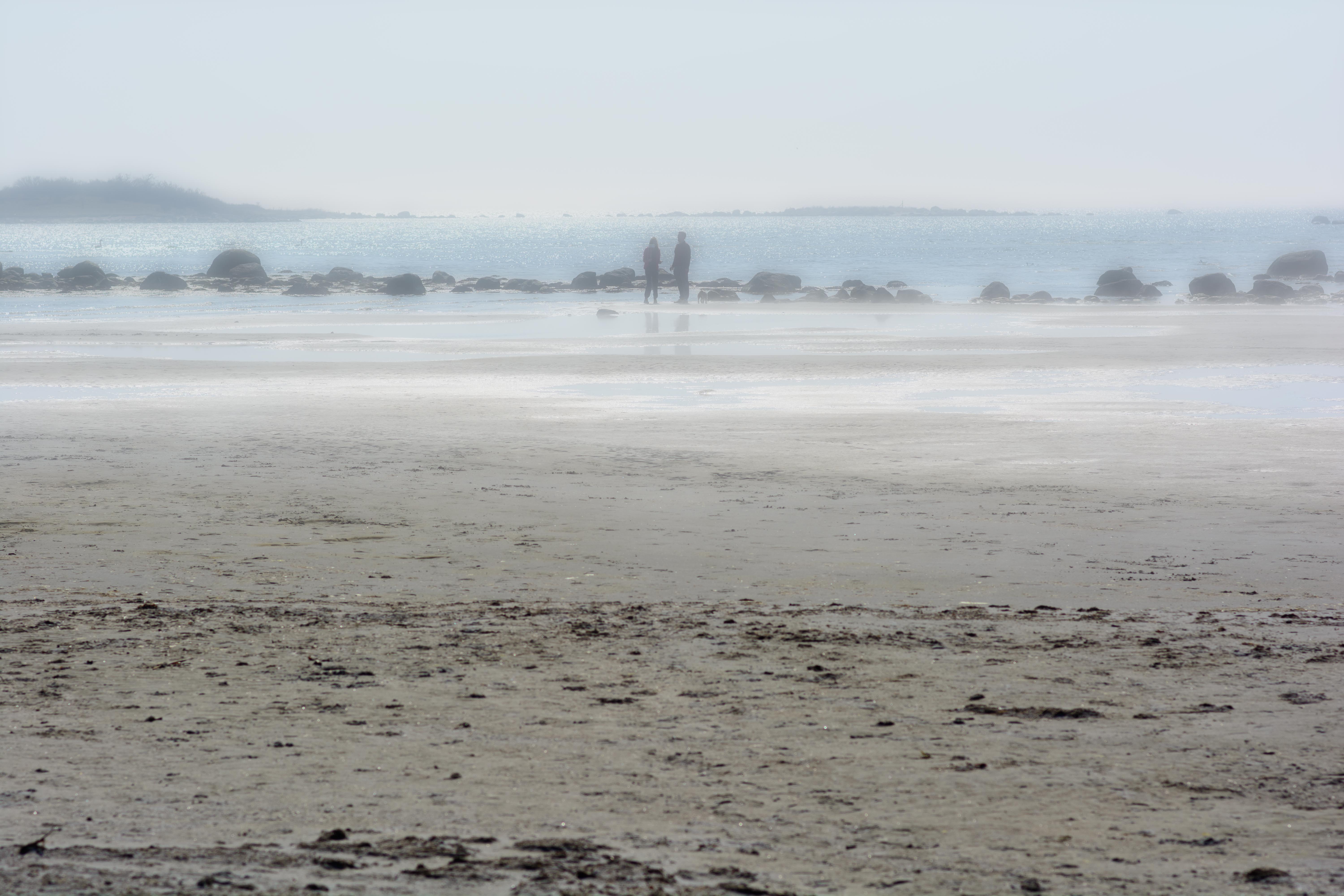 Jag står en bit utanför den normala strandkanten, men den här dagen var det väldigt lågt vattenstånd, så strandkanten hade flyttat ut en bra bit. Och dimmor drev in utifrån havet.