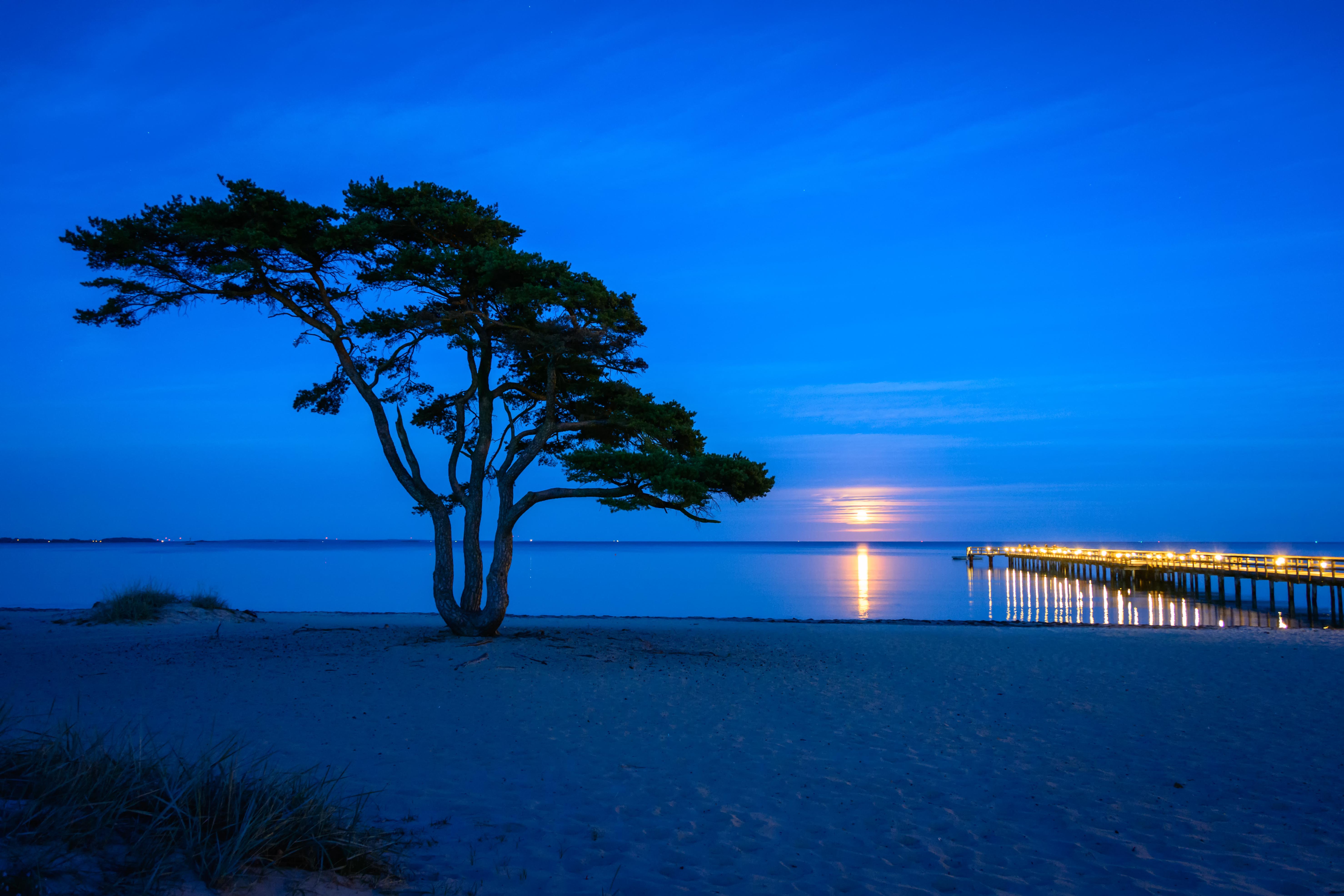 1. En helt underbart vacker bild!! Wow!! Den starkt blå färgen och det stora trädet tillsammans med ljusen från solen och bryggan förmedlar en både dramatisk och en mycket harmonisk känsla. Superduper!!