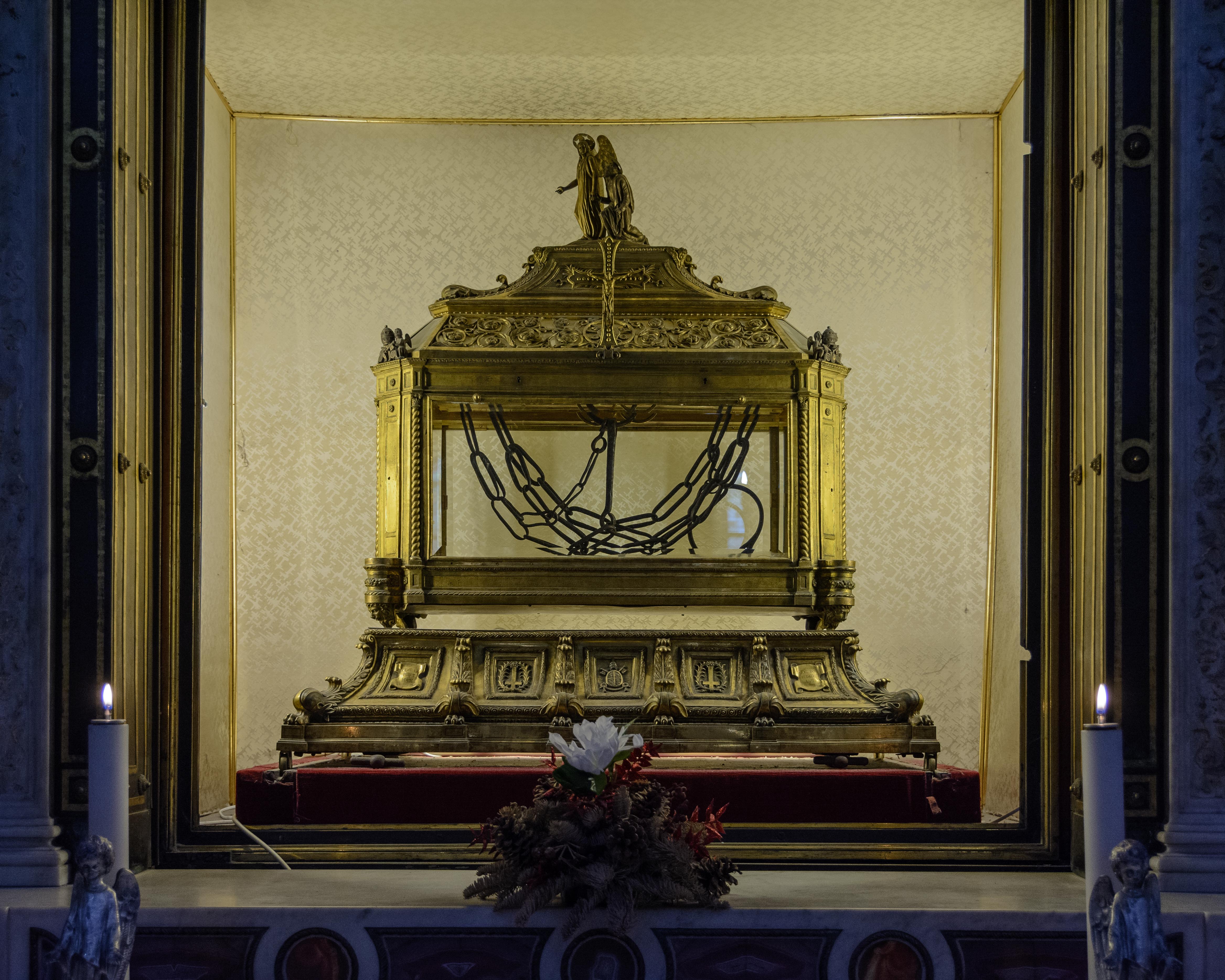 152 Kvarleva (288/365) Publicerat den 31 oktober, 2018 av claesbilder I kyrkan San Pietro in Vincoli i Rom finns ett relikskrin med kedjor. Det sägs att aposteln Petrus var fjättrad med dessa i Jerusalem och Rom. Inte vet jag, men de kan väl duga som kvarleva 🙂 Dela detta: Klicka för att dela på Facebook (Öppnas i ett nytt fönster) Facebook Klicka för att dela via LinkedIn (Öppnas i ett nytt fönster) LinkedIn Klicka för att dela på Tumblr (Öppnas i ett nytt fönster) Tumblr Klicka för att dela på X (Öppnas i ett nytt fönster) X Mer Klicka för att e-posta en länk till en vän (Öppnas i ett nytt fönster) E-post Klicka för att dela på Pocket (Öppnas i ett nytt fönster) Pocket Klicka för att dela på Reddit (Öppnas i ett nytt fönster) Reddit Gilla Laddar in … Relaterade