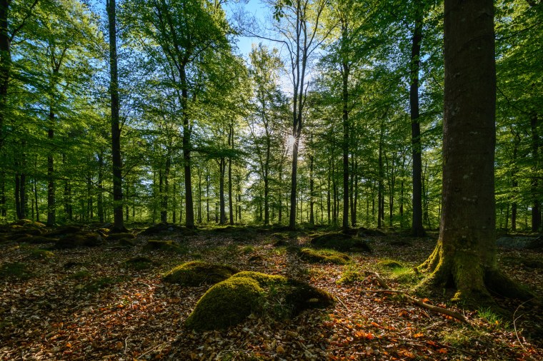 Superfin bild! Skärpedjupet … ljuset … grönskan …. en flik av blå himmel … marken med de mossklädda stenarna … suck! Svara