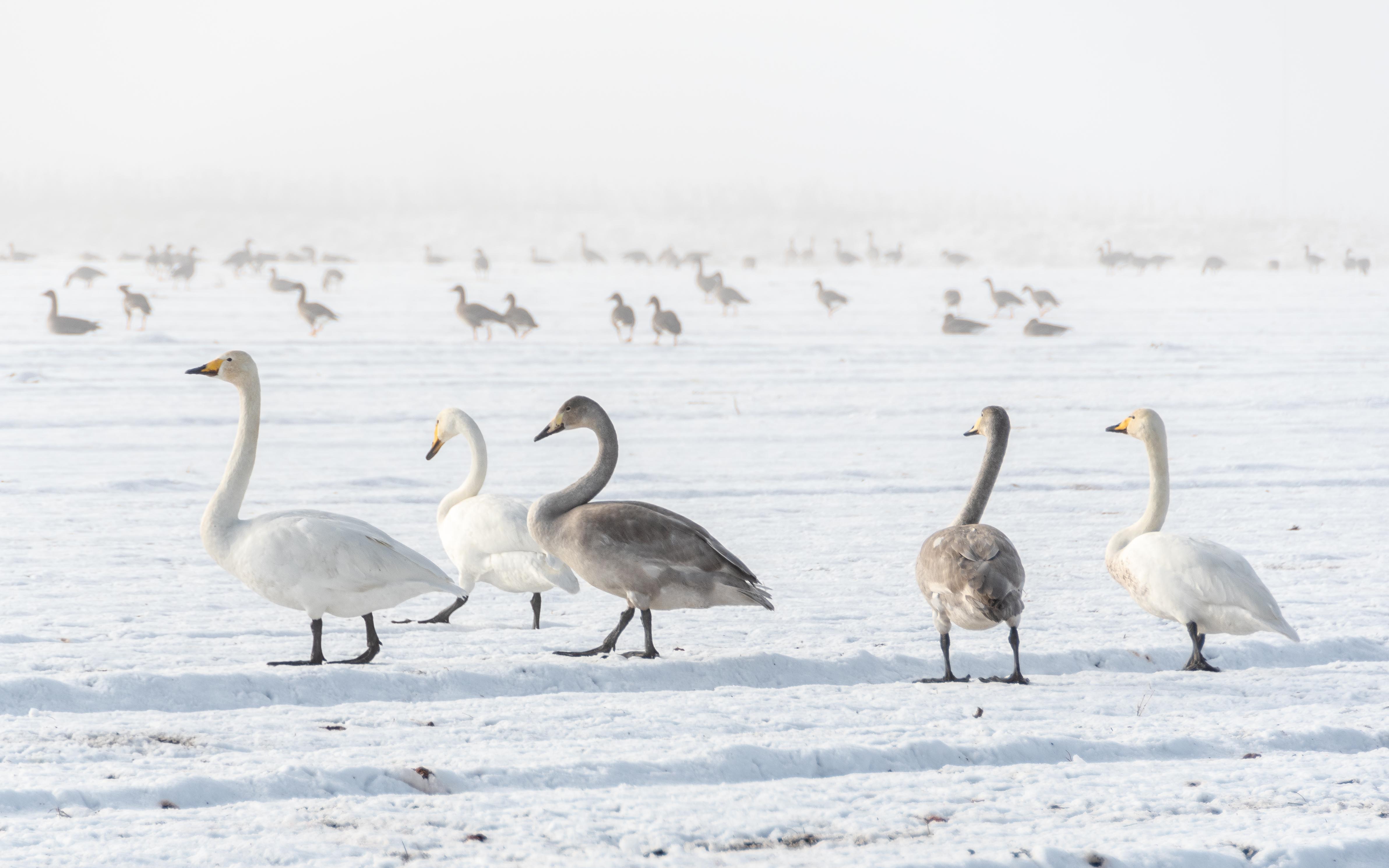 Det var massor av fåglar på fältet, sångsvanar och gäss.