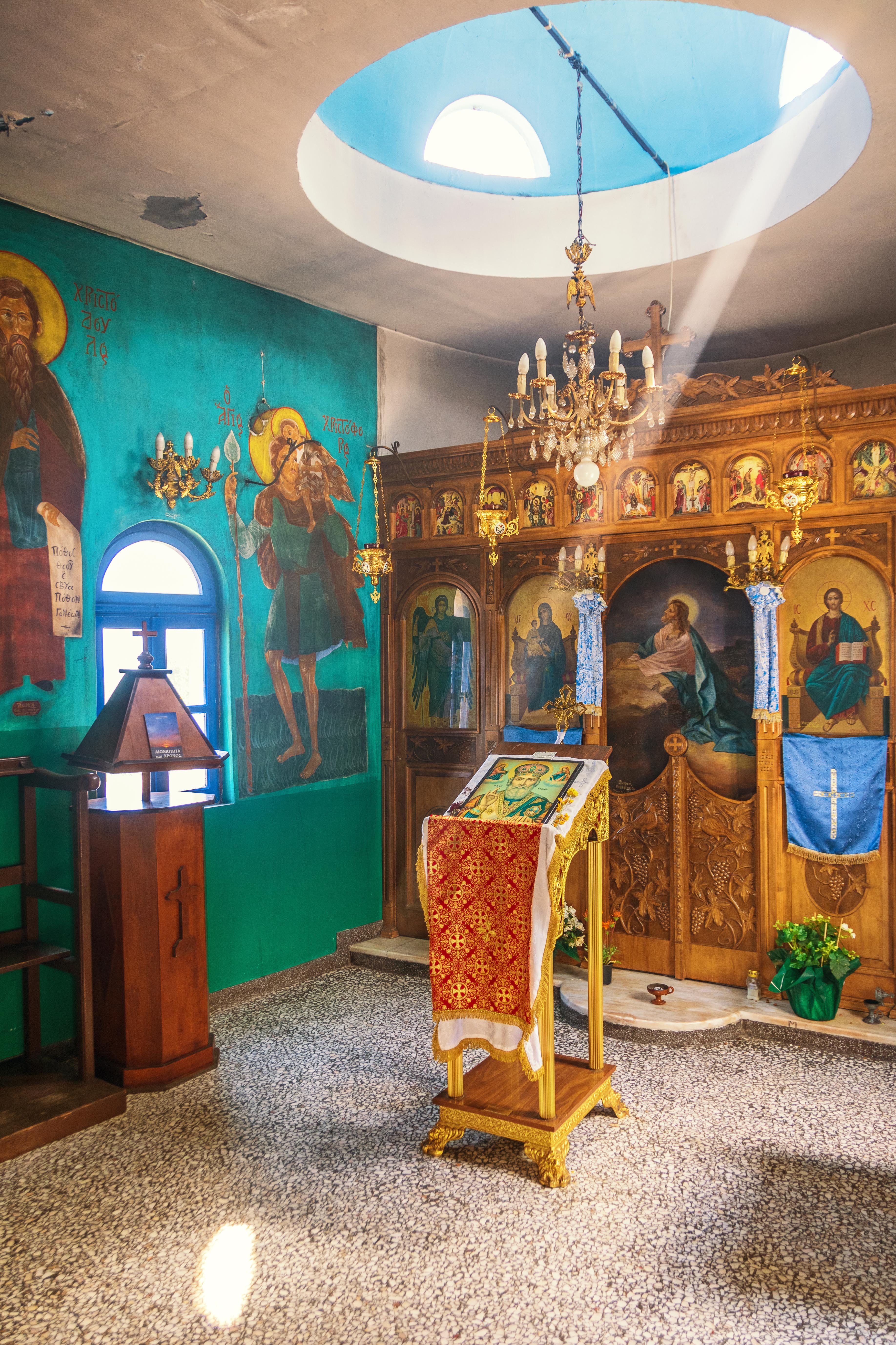 Solljuset strålade in genom en av fönstergluggarna i takkupolen.
