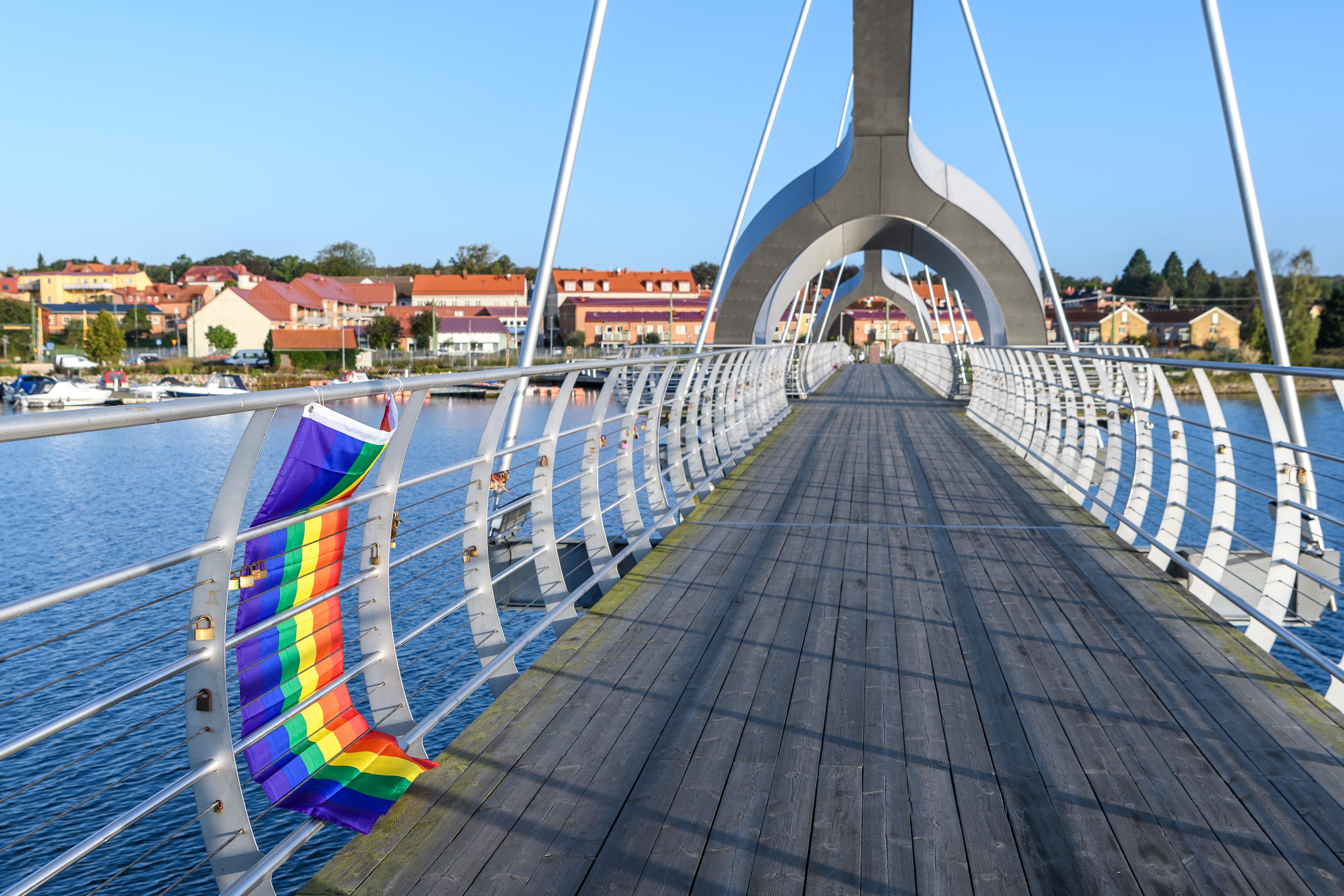 Ett inslag i protesterna kunde morgonvandrare på Sölvesborgsbron ta del av idag. Protesterna handlar inte om själva flaggan utan om vad den står för numera. Den ses av många inte bara som en symbol för hbtq-personers rättigheter utan också som en allmän symbol för frihet, för rätten att vara och älska vem man vill, som en symbol för kampen mot alla former av diskriminering, för mänskliga rättigheter.