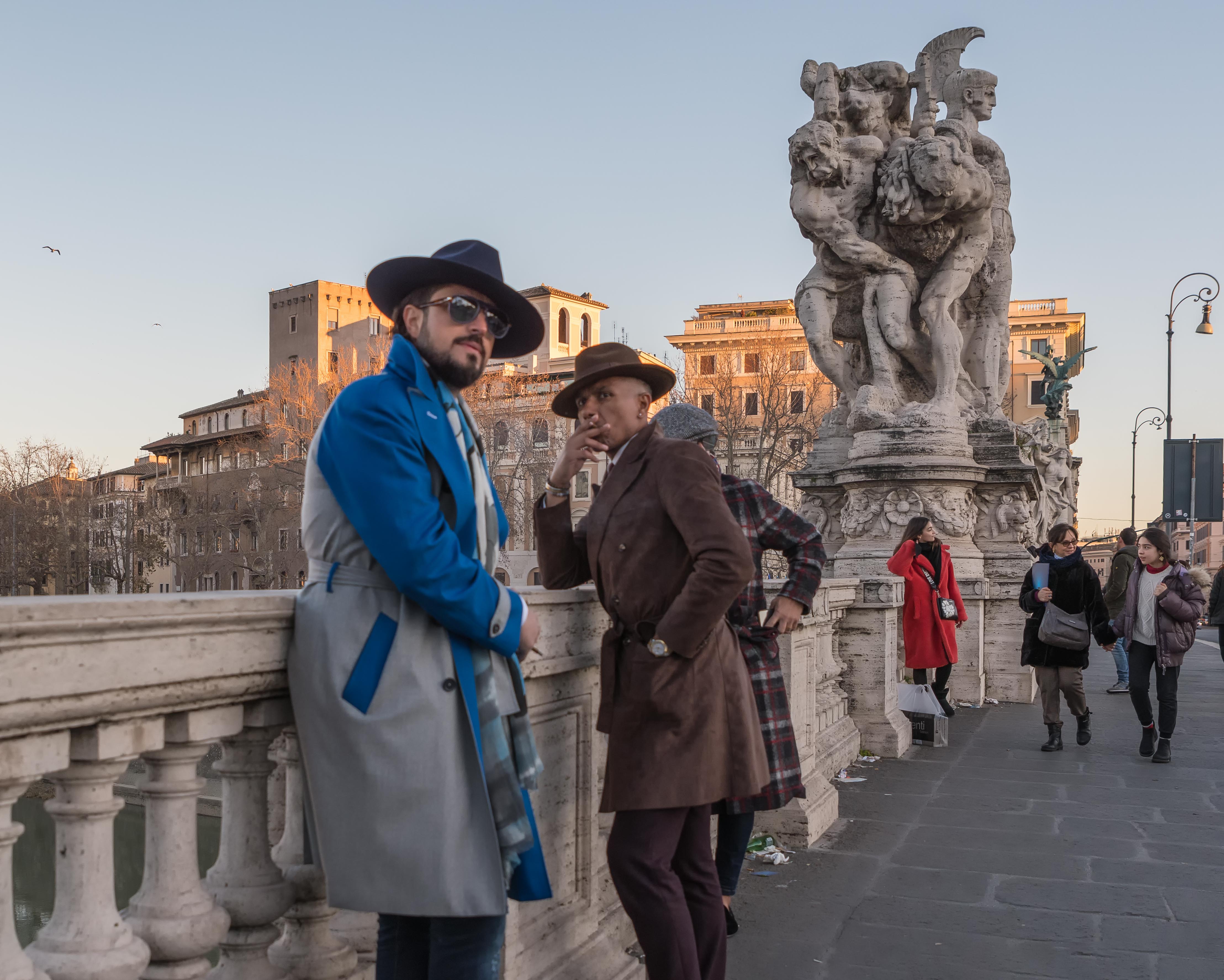 Det var ett häftigt foto på de eleganta männen. Snyggt uppställda i den historiska miljön med statyn och solen med sitt fina ljus i bakgrunden. Det kunde vara ett foto från Vogue eller liknande.