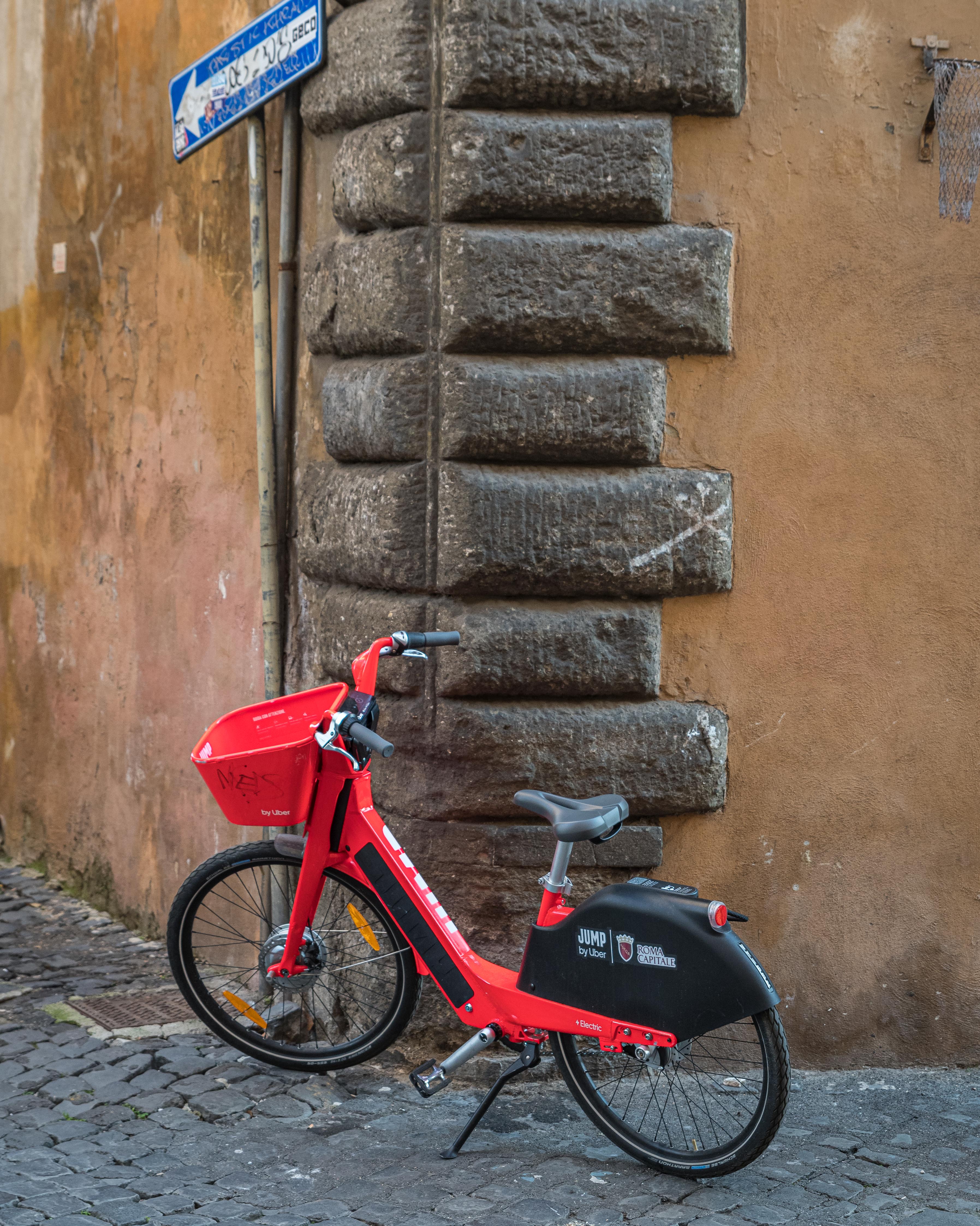Med tanke på vad jag kommer ihåg om Roms trafik, så skulle jag också välja fötterna. Snygg bild, med cykeln i hörnet så där.