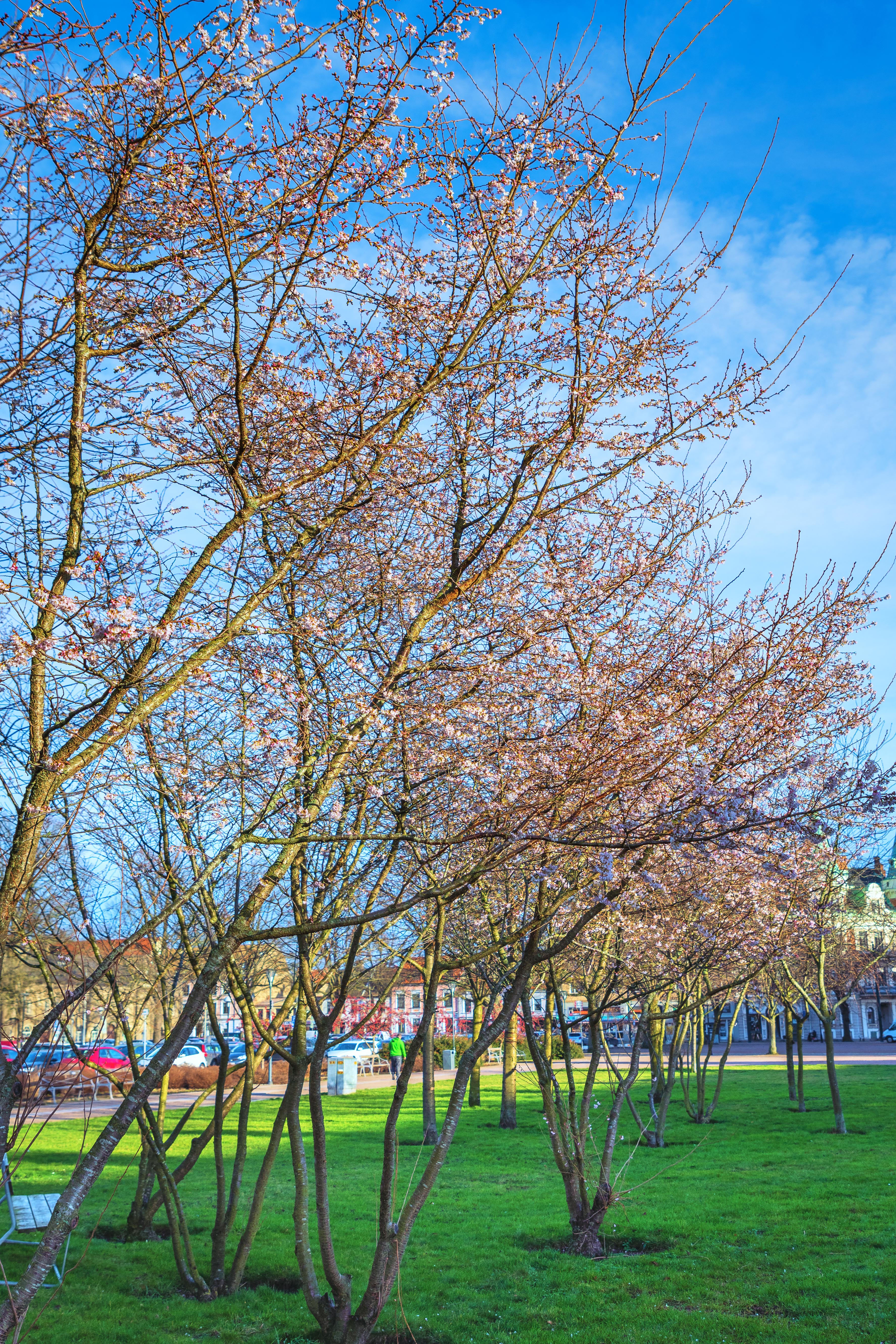 What! Ja, det var vad jag och min sambo tänkte när vi i måndags var i Landskrona och såg det här. Vintergäck och snödroppar har ju blommat i flera veckor nu. Men här hade även körsbärsträd börjat blomma. Vet inte vad det är för sort, men det kan ju inte vara rätt tid för dem nu.