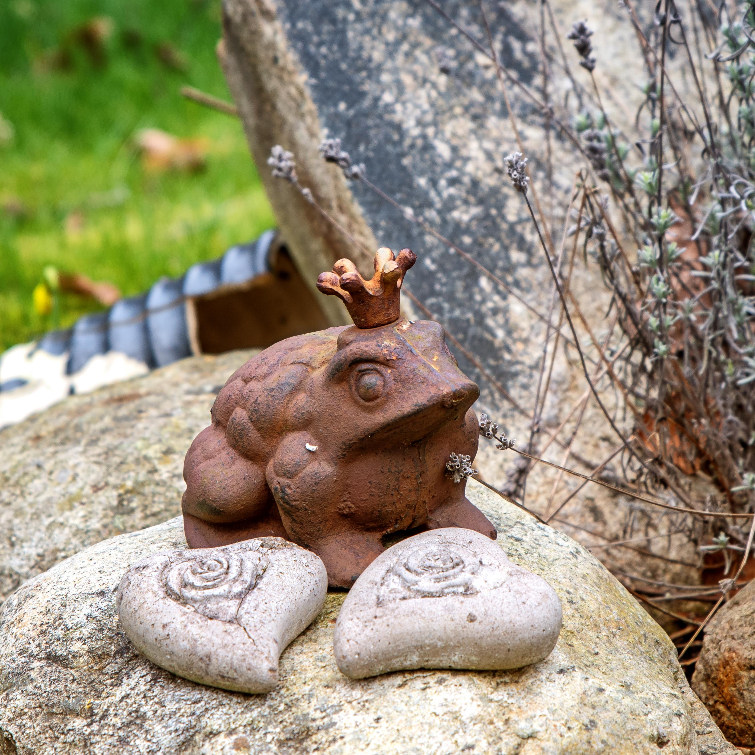 Snyggt ljus, snyggt med den rostfärgade grodan mot de stengrå färgerna.