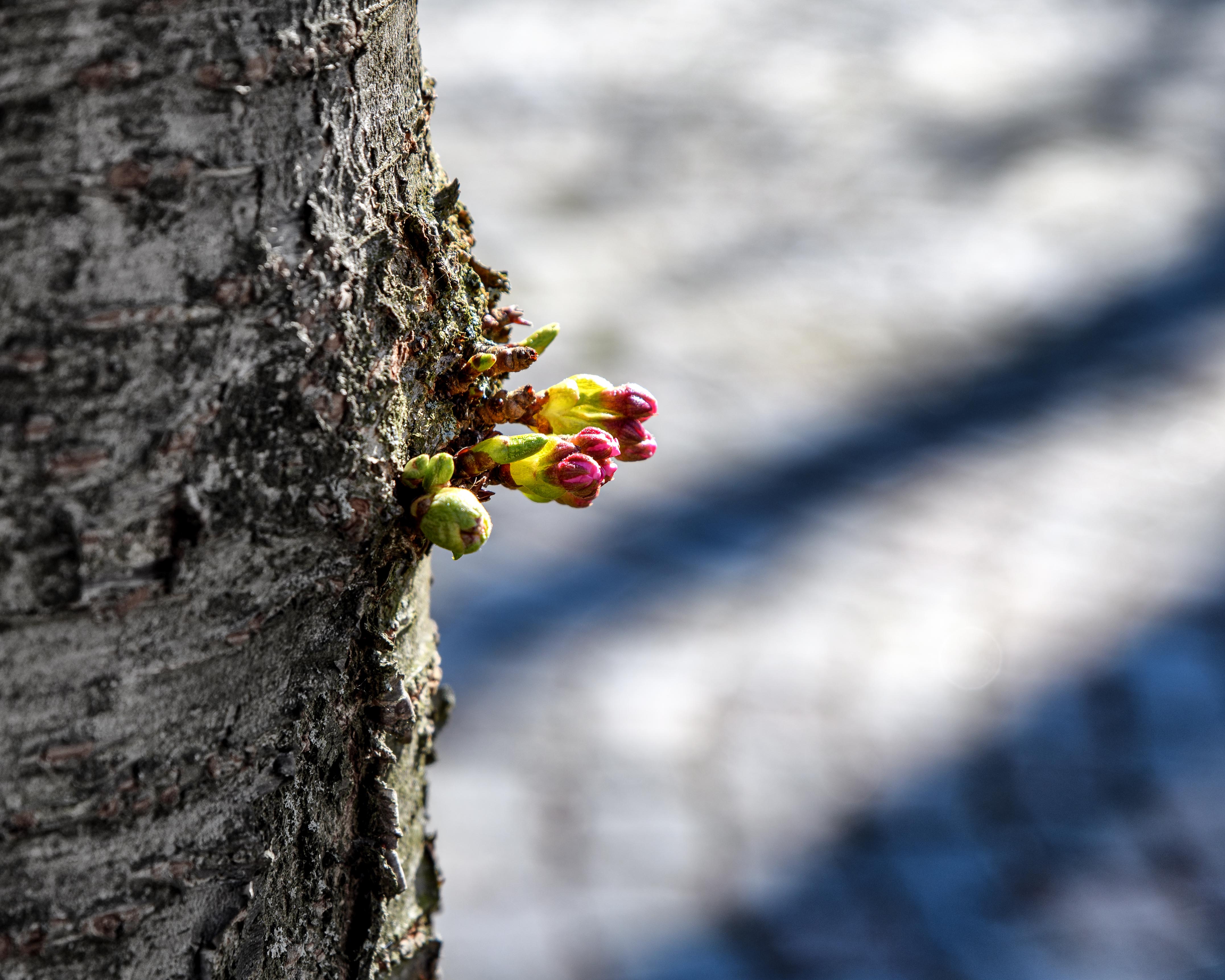 Här skjuter Tokyokörsbärsträdet skott direkt från stammen.