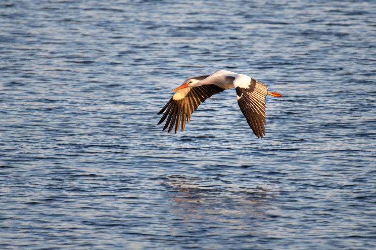 En fantastisk bild där du fångat den flygande storken så perfekt. Bra skärpa och ett snyggt ljus där fågelns fina färger framträder så jättebra.