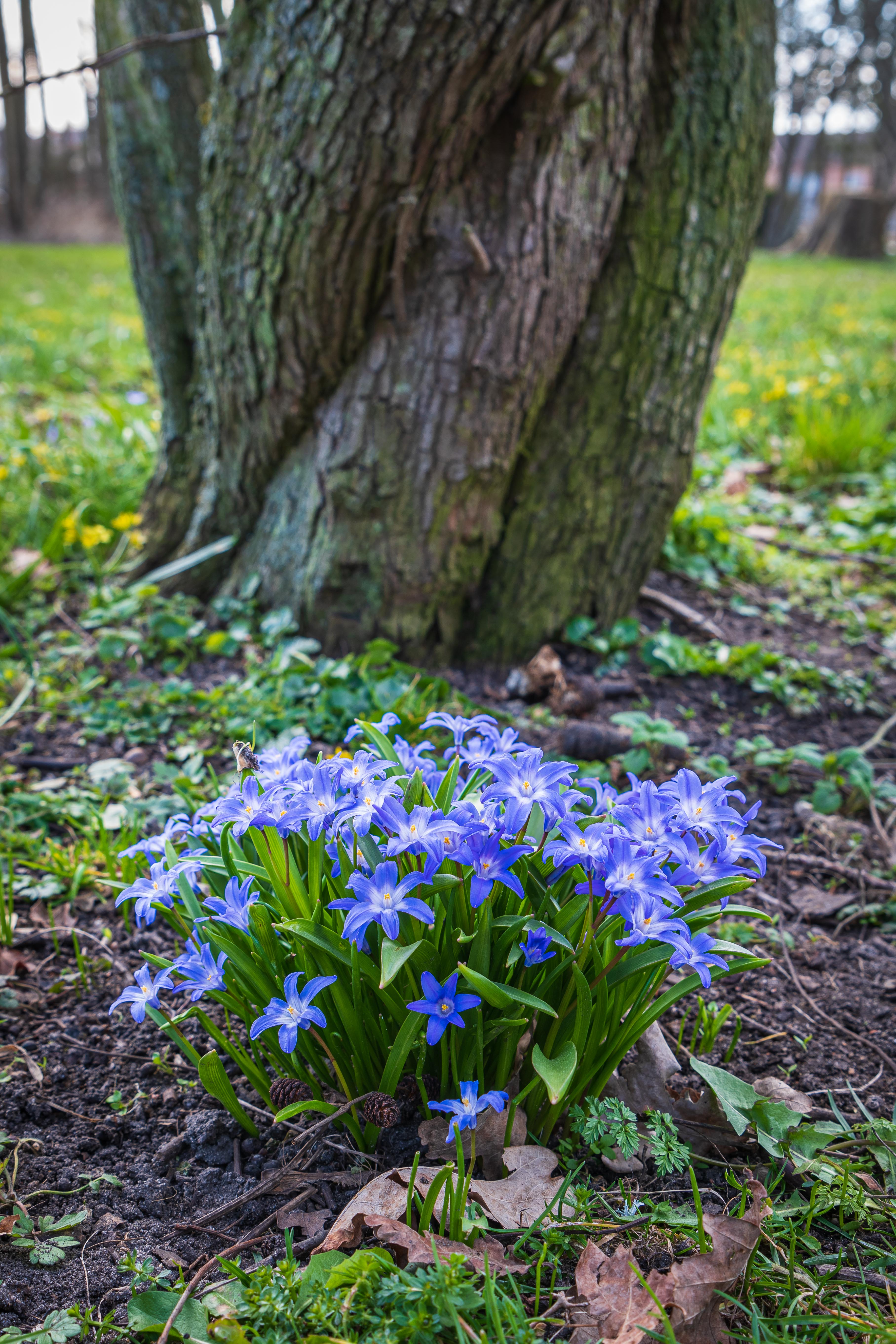 Vackrare än så här kan det väl knappast bli invid en trädrot med vårblommor som bara sprakar av vacker blå färg och jag kan ana gula vackra blommor runt om också. Vackert ställe. Svara