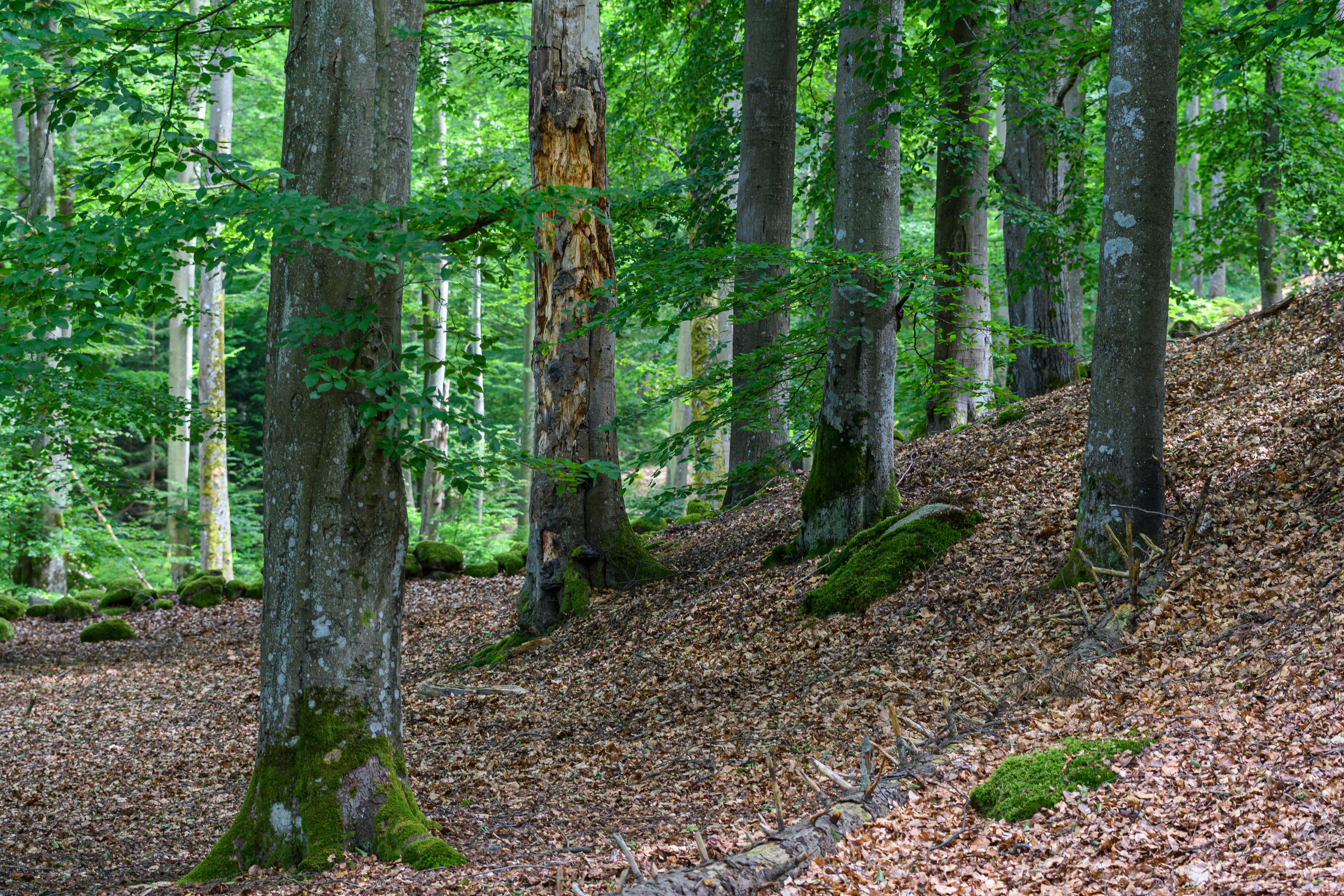 Fin foto på bokskogen. Det blir ett speciellt ljus där som du fångat fint. Snyggt med diagonalen och den skarpa gränsen mellan brunt och grönt. Svara