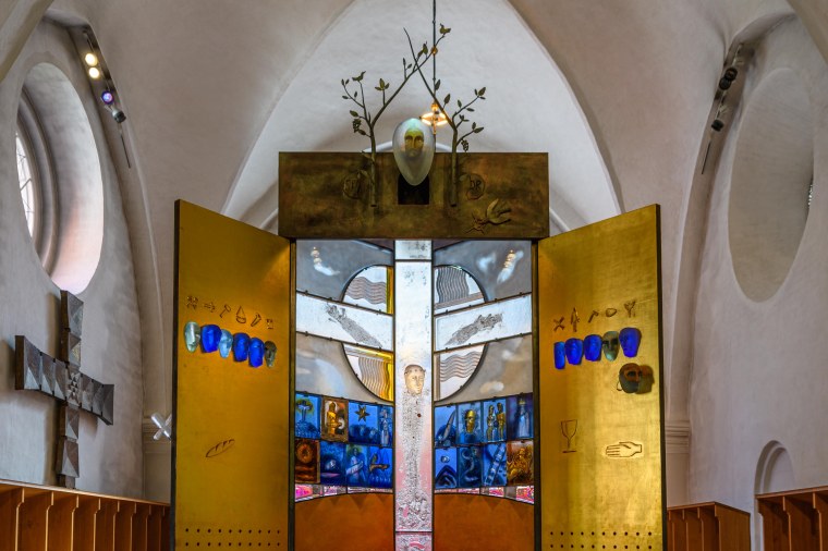 En del av altarskåpet i Växjö domkyrka, gjort av Bertil Vallien.