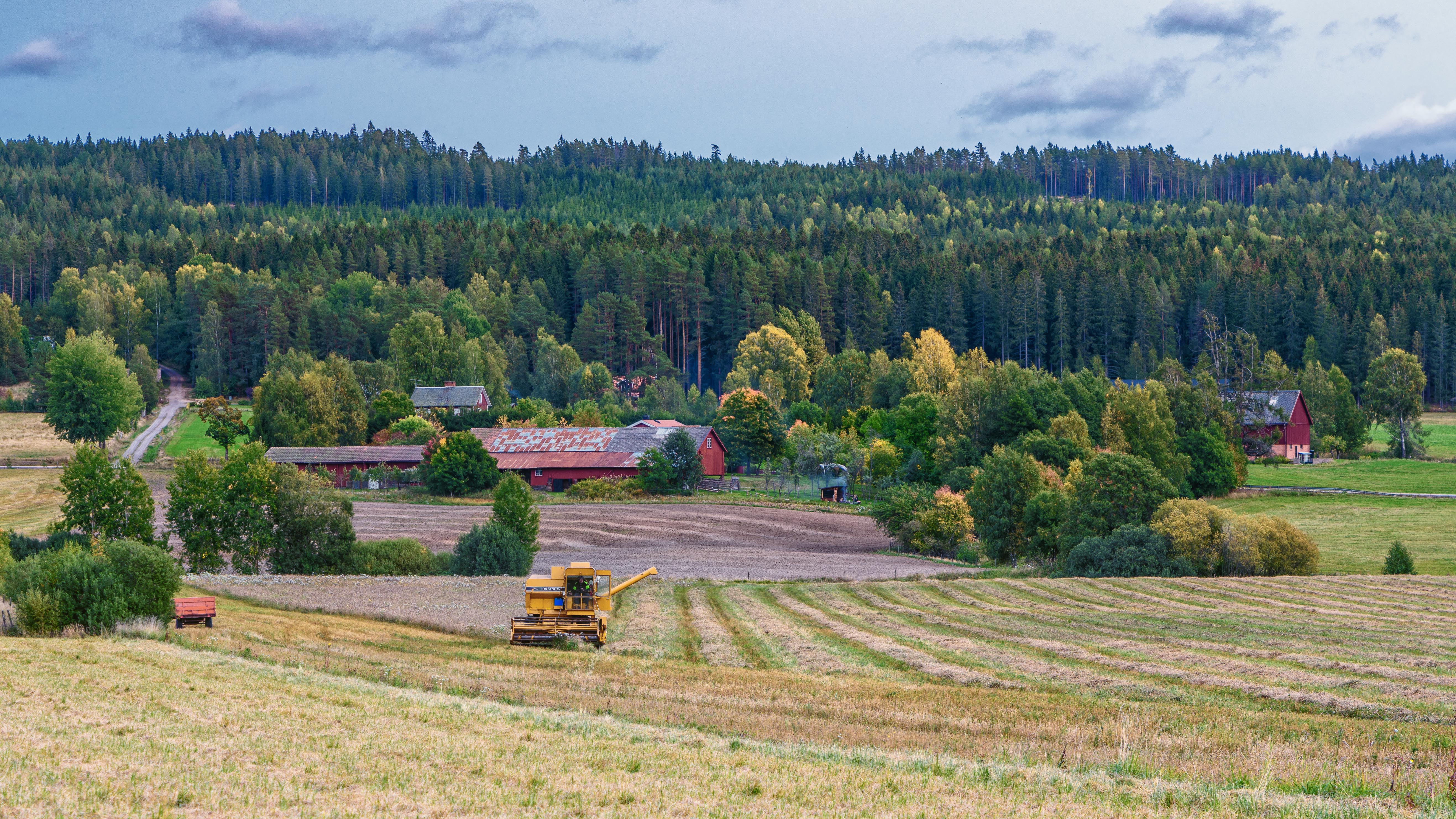 Vilken vy! Förstorade upp den till fullformat och då blev den i mitt tycke helt fantastisk. Den svenska landsbygden, den täta skogen och höstjobbet i ett nötskal. Väldigt snyggt komponerat där du fick med så mycket på en och samma bild.