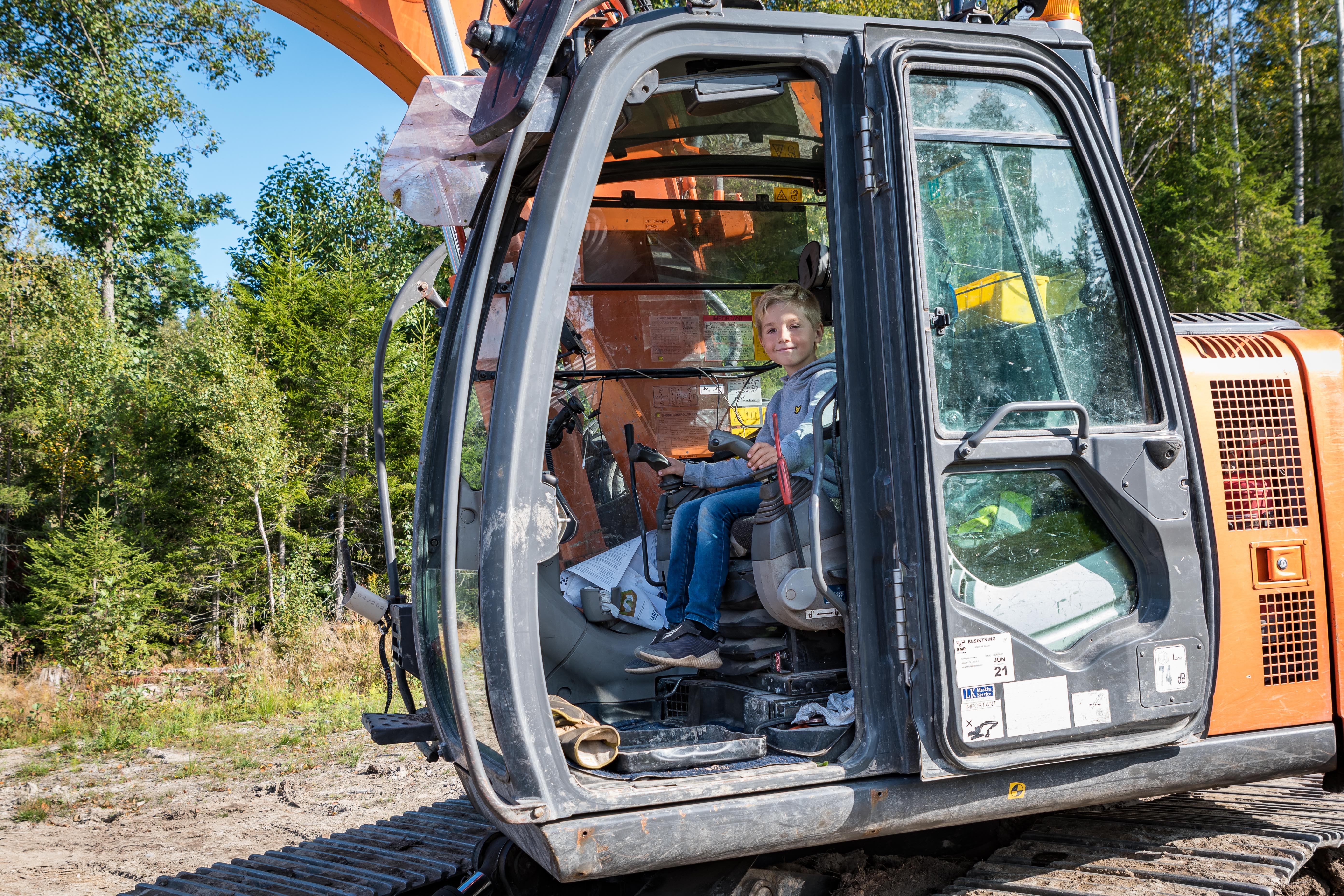 Inte varje dag man får möjlighet att ”spaka” en grävmaskin i den åldern. Klart man ser nöjd ut då 🙂