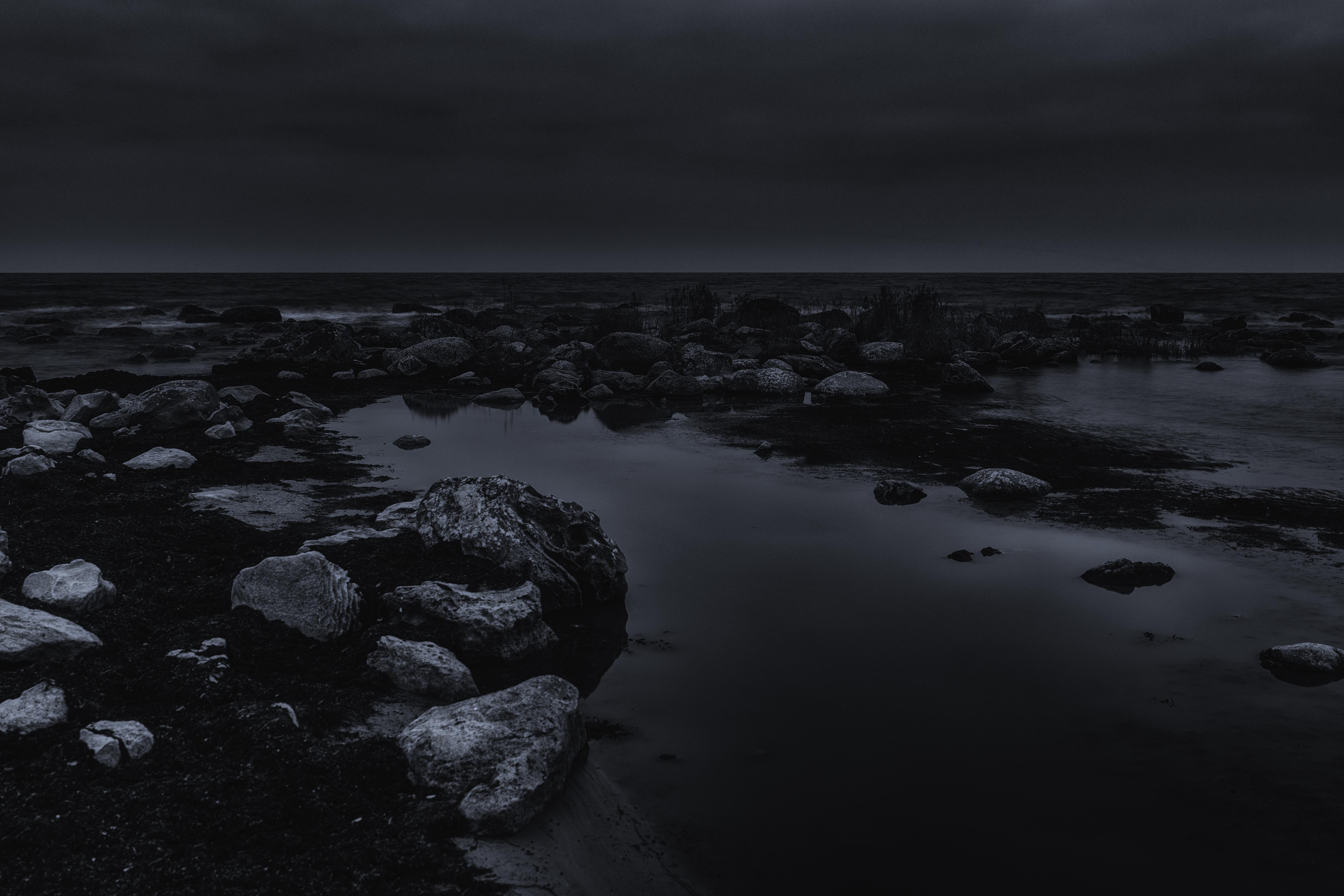 2. Åh vilken vacker bild. Jag tänkte det samma att den skulle kunna bli en fin tavla. Jag gillar bilder med en enhetlig färgskala och där nyanserna inte är så tydliga. Det ljusare partiet vid horisonten tas upp fint i vågorna och stenarna till vänster i bild. Det var en riktigt fin bild tycker jag. Hur mörkt var det när du tog fotot? Hade du stativ?