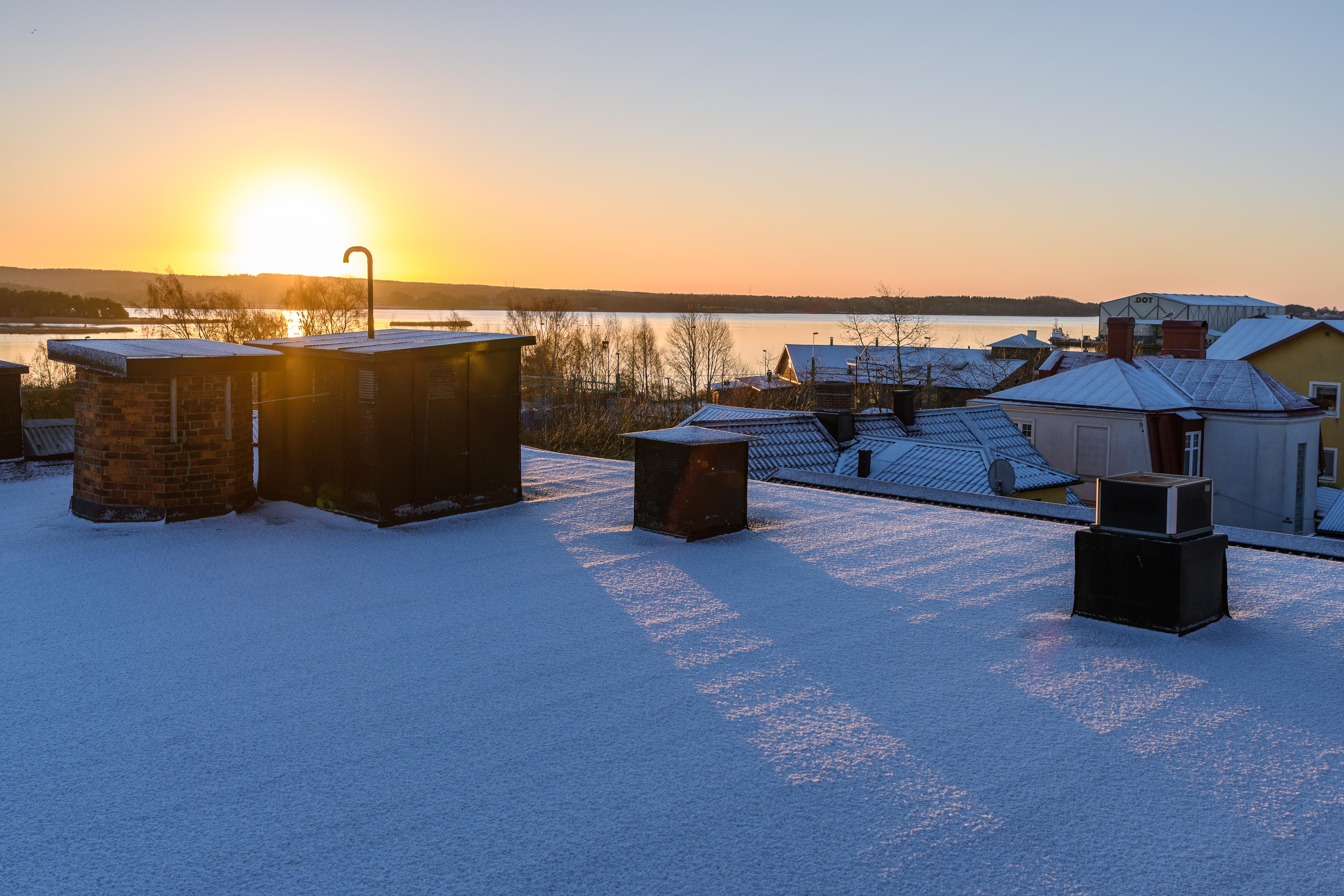 Här har vi fortfarande höst, men i natt kröp temperaturen ner strax under nollan och det kom lite snö, som täckte taken i morse. Men efter en solig dag har det mesta redan smält bort och resten lär försvinna i morgon. Då ska det bli upp till 9 plusgrader och till kvällen regn. Numera vet man aldrig om det blir någon vinter här, så jag får passa på och ta den här bilden till temat ”Köldfenomen” 🙂