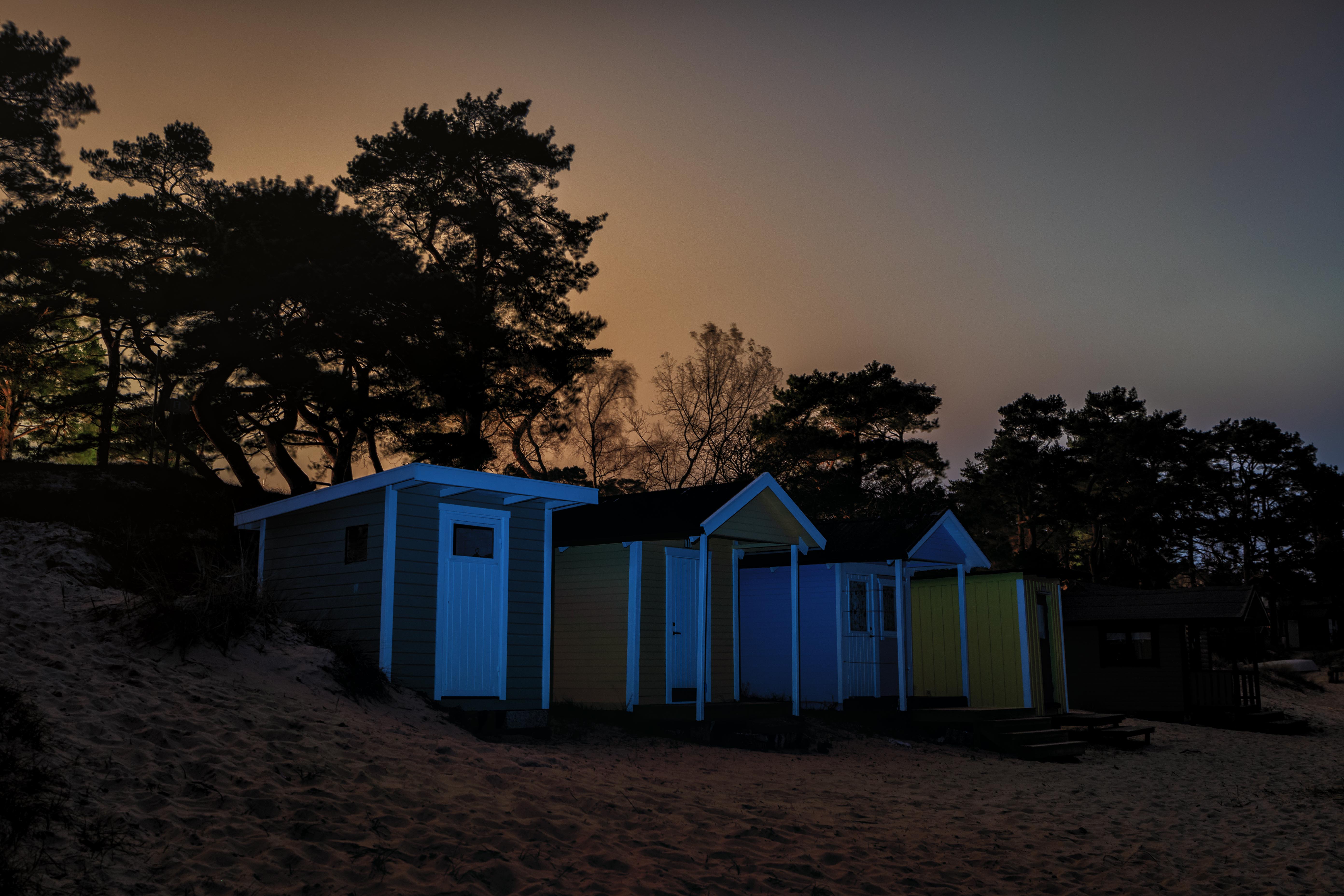 Mysiga badhytter och ett fint ljus i bilden! 🙂