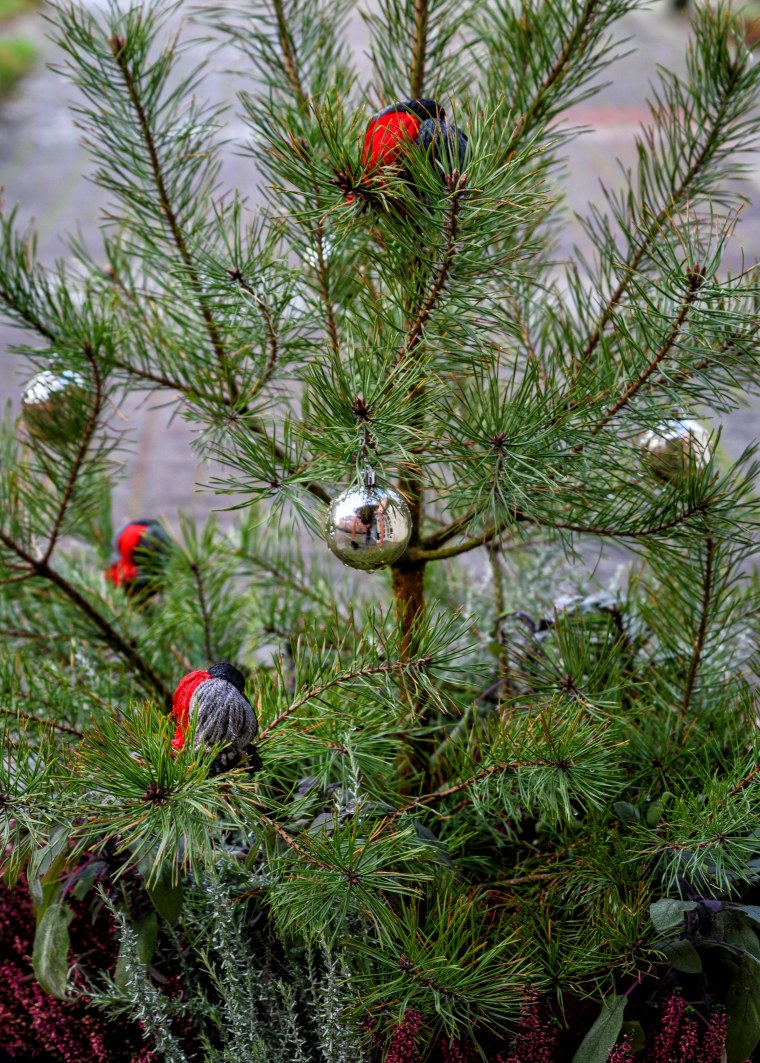 Vilken tur att du hittade några. Snyggt foto med det knallröda mot granens gröna grenverk.