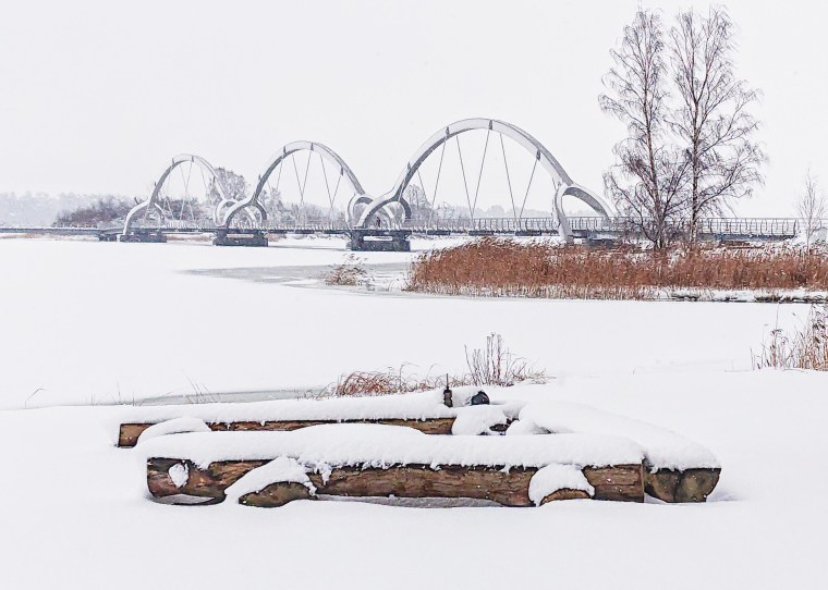Härligt med snö och vinter! Kan tänka mig att det är ovanligt med den häftiga bron omgiven av så mycket snö och is. Vad gjorde man utan mobilen… 🙂