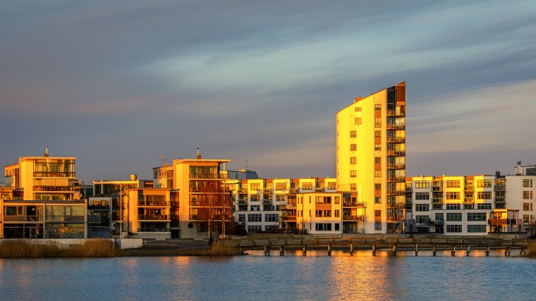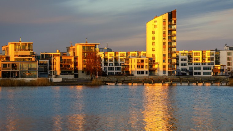 Bilderna två och tre får mig att tycka att det högsta, spetsiga huset tar för mycket plats och jag känner mig lite störd av det när himlen eller vattnet beskärs.