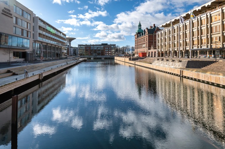 Fint djup i bilden och snygga speglingar av molnen i kanalen.