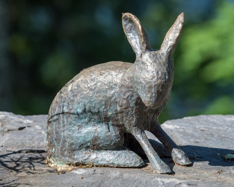 Vilken vacker skulptur. Den smälter som ihop med stenen den är placerad på. Snyggt med det korta skärpedjupet och den gröna bakgrunden.