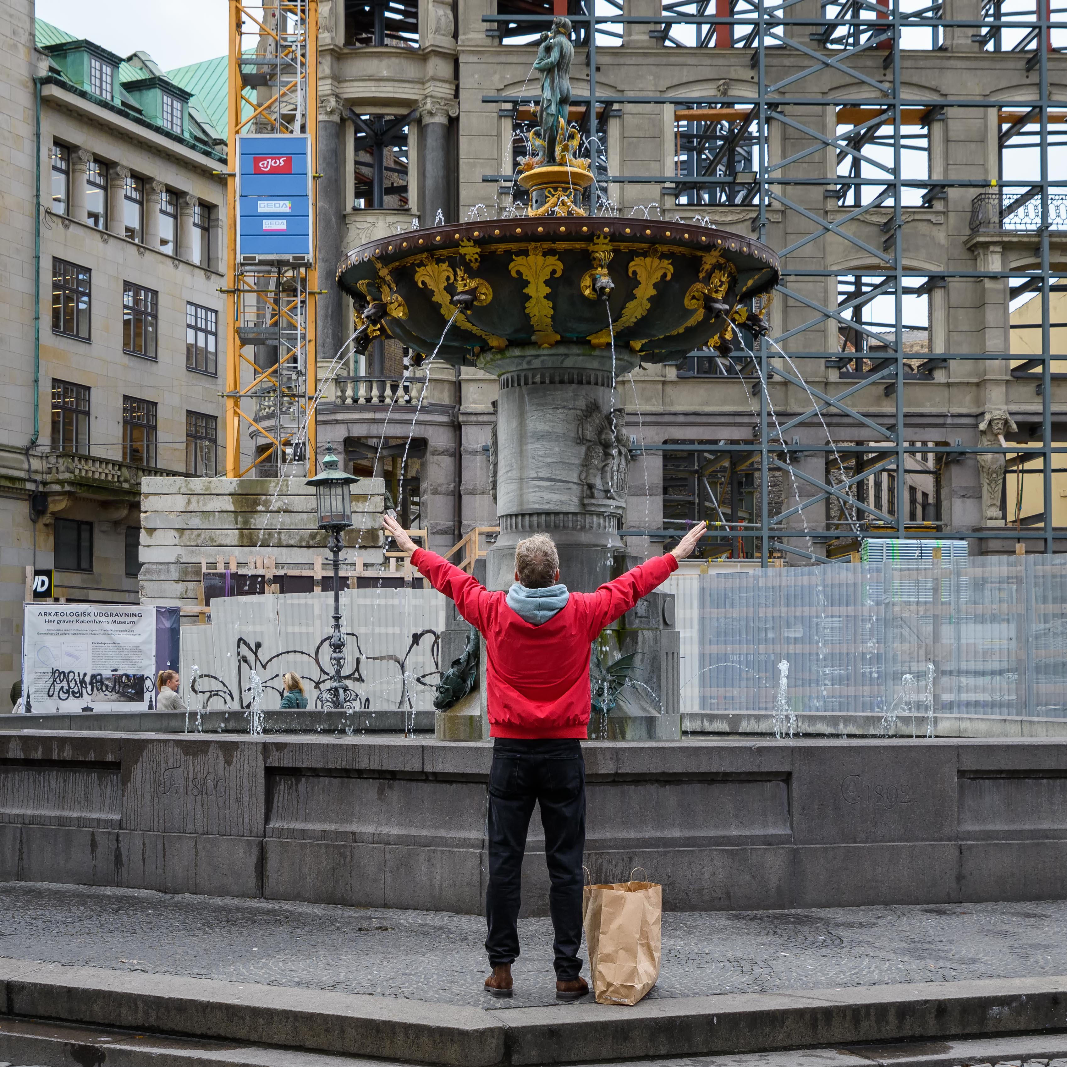 Det såg ut att vara en han, men undrar också vad han höll på med. Min sambo och jag stod en stund och tittade och han gjorde sådär hela tiden. Han tog ner armarna och sträckte sedan upp dem i den där positionen, gång efter gång. Det såg ut som om han tillbad något, men vi förstod i så fall inte vad, såvida inte fontänen representerar något särskilt 🙂