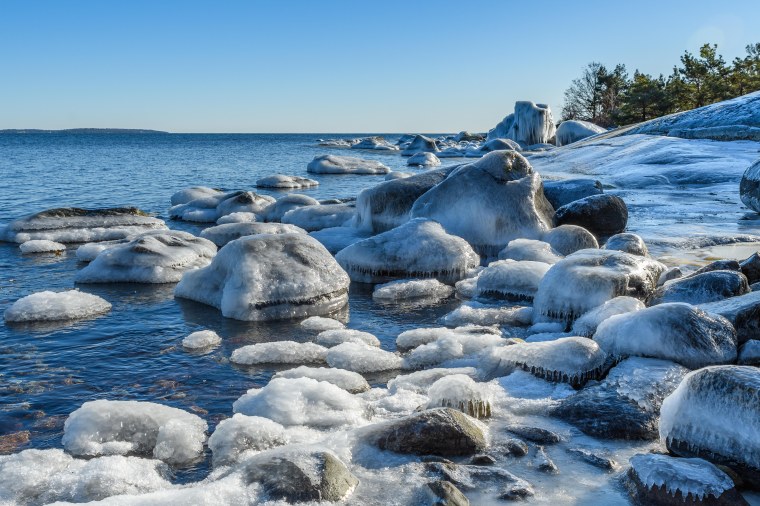 1. Väldigt vackert med de isiga bumlingarna och ändå ett öppet vatten. Några av stenarna är nog på väg att klättra upp för att hitta värme.