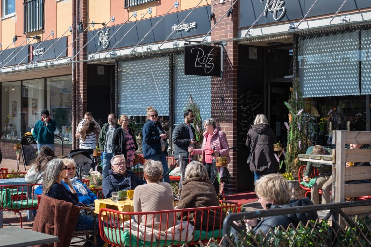 1. Så där såg det ut under pandemitiden pga avståndsreglerna. Men nu var det påsken med hemvändare, campare och stugägare i kombination med vårvädret, strålande sol och 15 plusgrader, som gjorde att fler än vanligt ville fika. Dessutom är det på stans bästa cafe’ och bageri 🙂