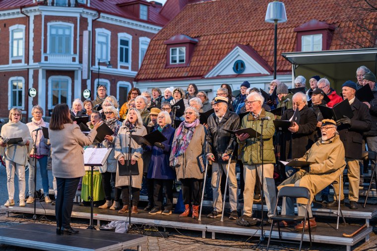 Här har också varit några kyliga nätter, så det blev inte en valborg i lätta vårkläder. Men de seniora sångarna såg ut att sjunga sig varma 🙂 Svara
