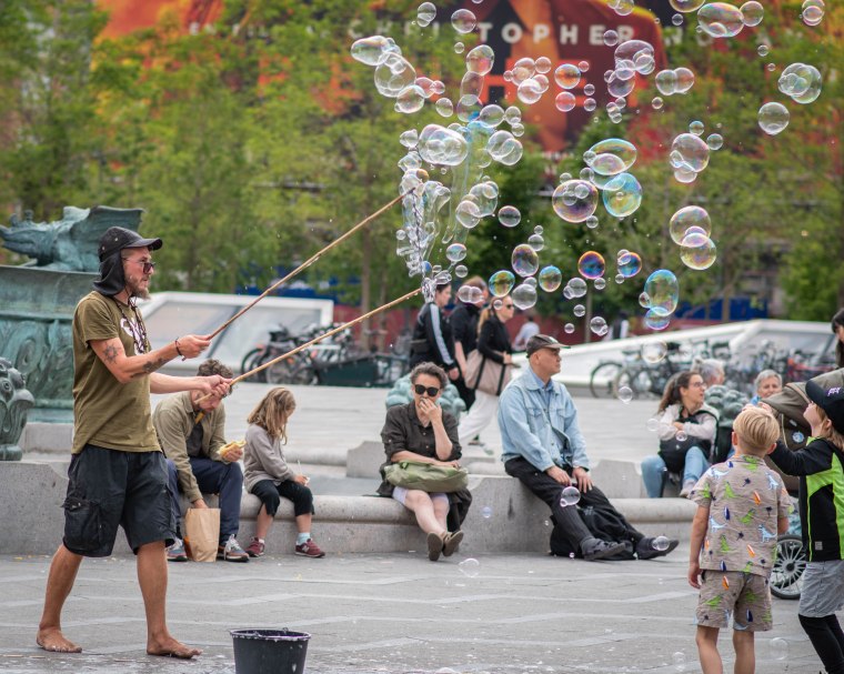 1. Jag har sett en del göra riktigt, riktigt stora bubblor, men här verkade han vara inne på att göra många bubblor. Där var flera barn (utanför bild), som sprang runt och jagade alla bubblorna.