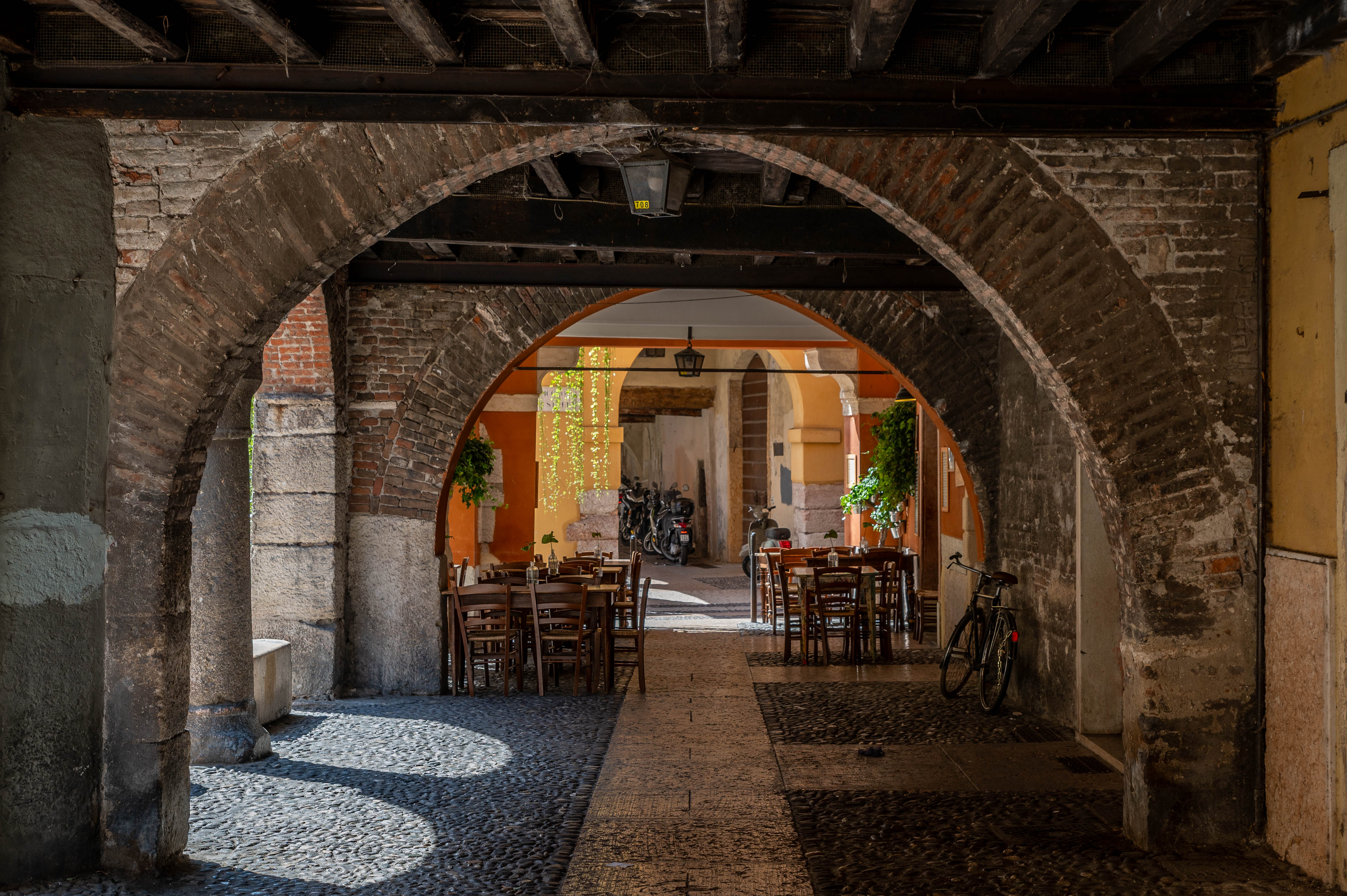 1. Det är något visst med valv som ramar in och ger djup i bilderna. Det här var i de äldsta delarna av Verona. Där låg flera restauranger under arkaderna.Tack 🙂