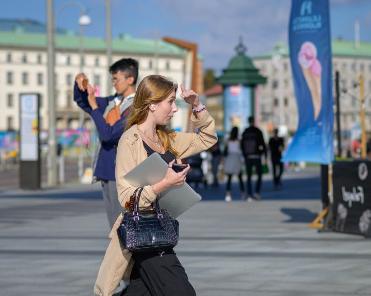 Vilken rolig min du fångade. Såg du vad hon reagerade på? Och killen som plåtar nåt intressant åt andra hållet. Svara