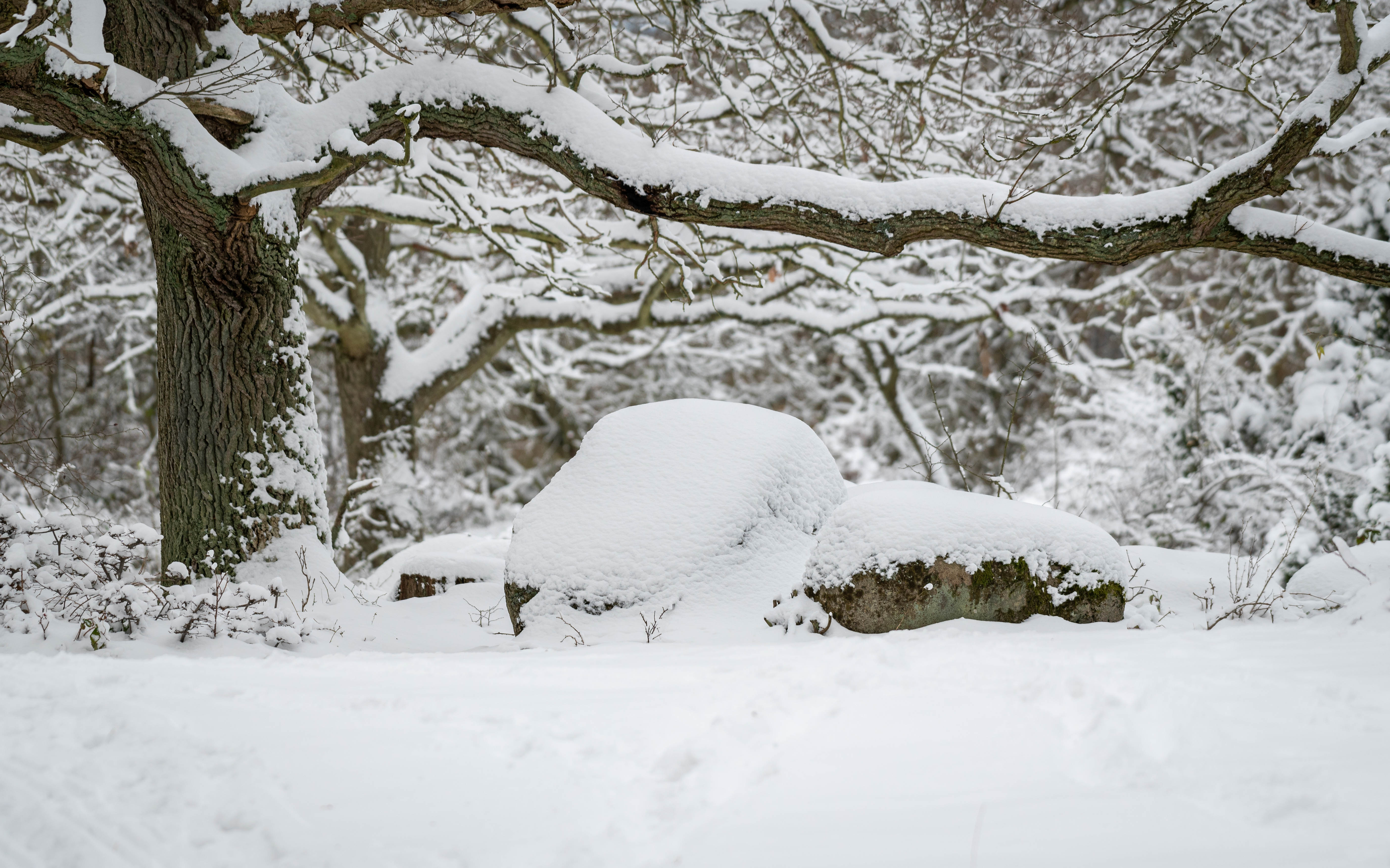 Man förundras över grenens kraft att sträcka ut sig så långt och hänga kvar utan att knäckas. Väl sett, snyggt med snöstenarna nedanför, skulptural vackert.