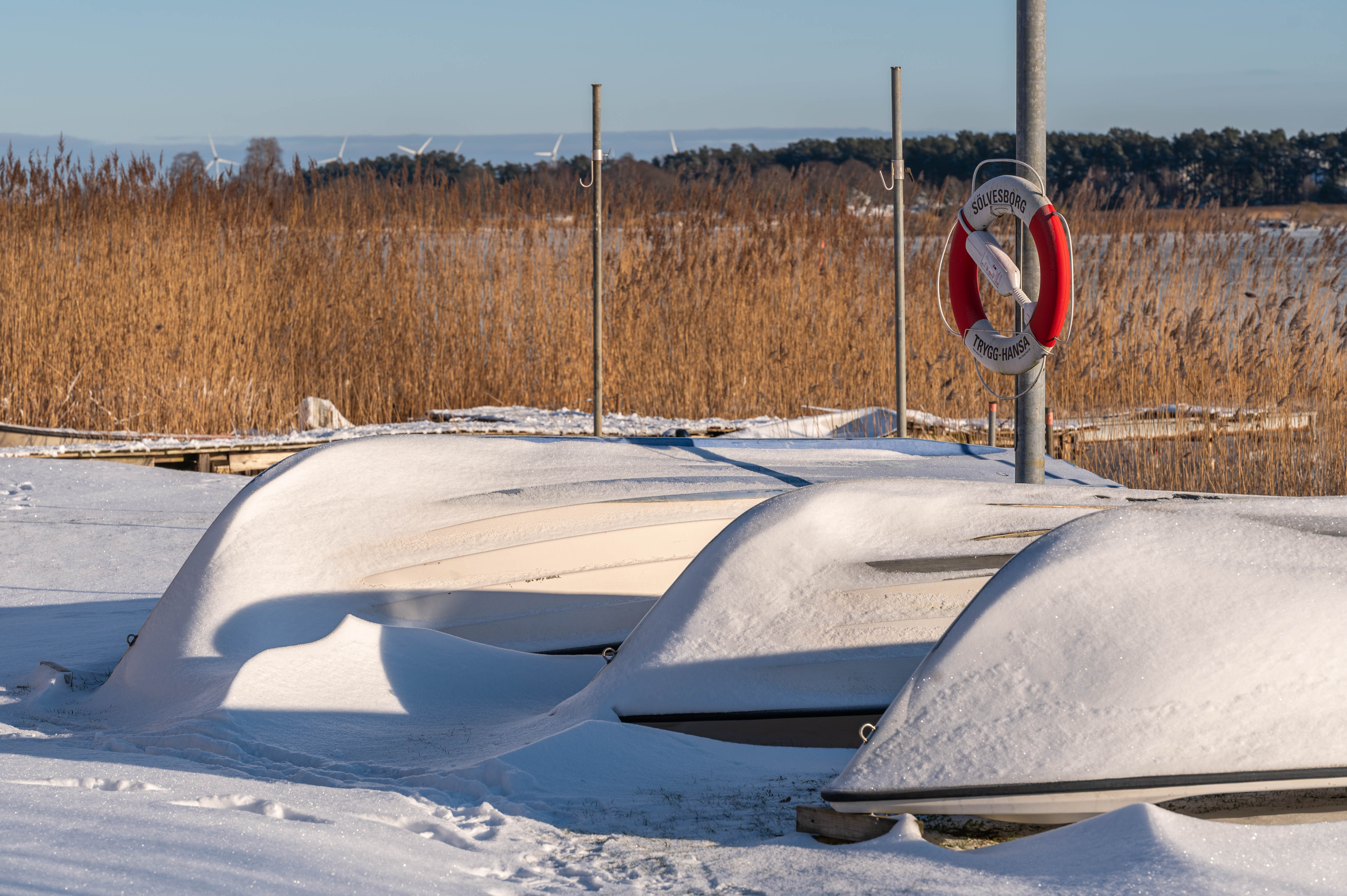 1. Så fina former de uppochnedvända båtarna bildar, som snön förstärker och samtidigt mjukar upp. Gillar bilden mycket.
