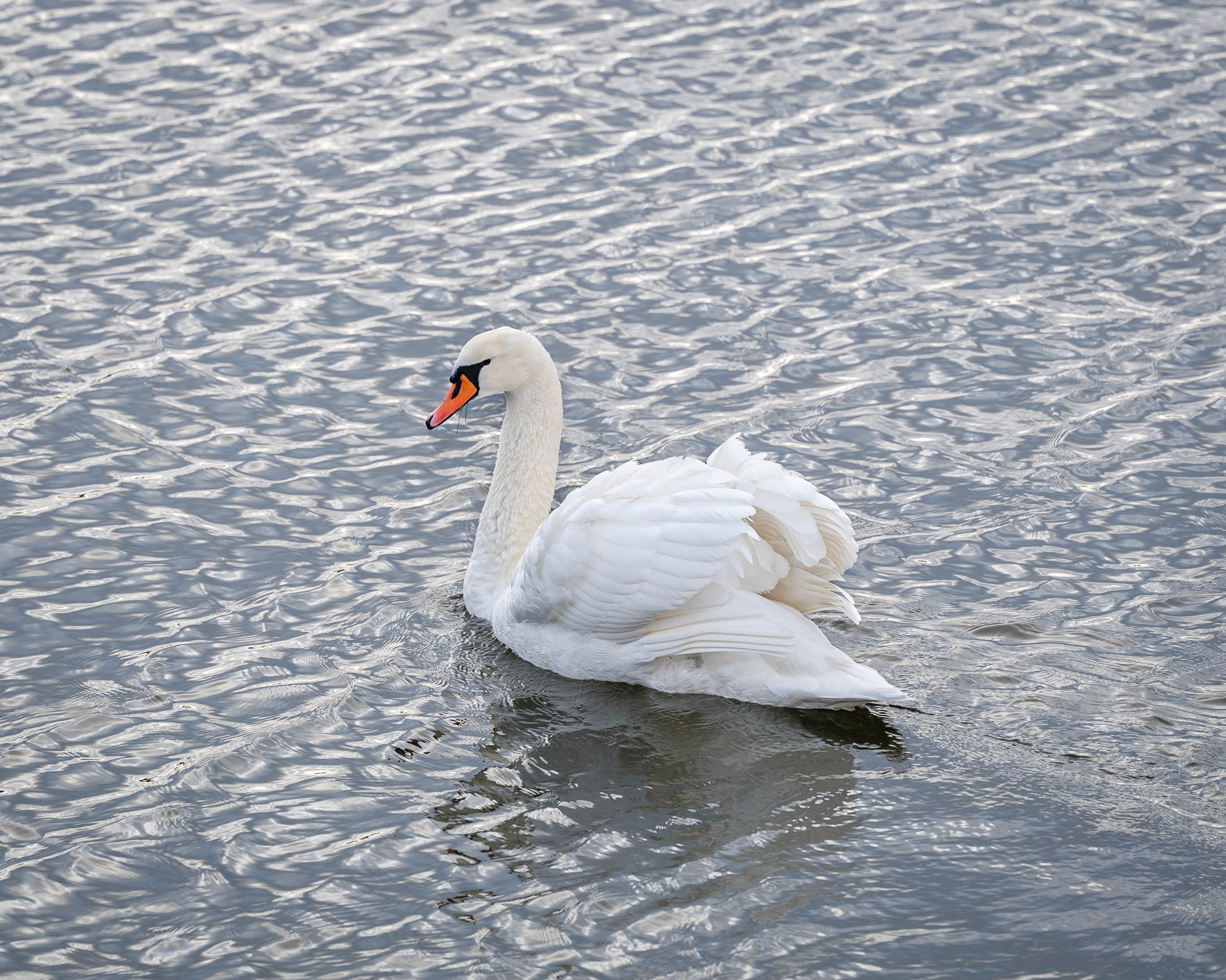 Oj, vattnet som silver och svanen som nästan ser ut att glida ovanpå. Snyggt.