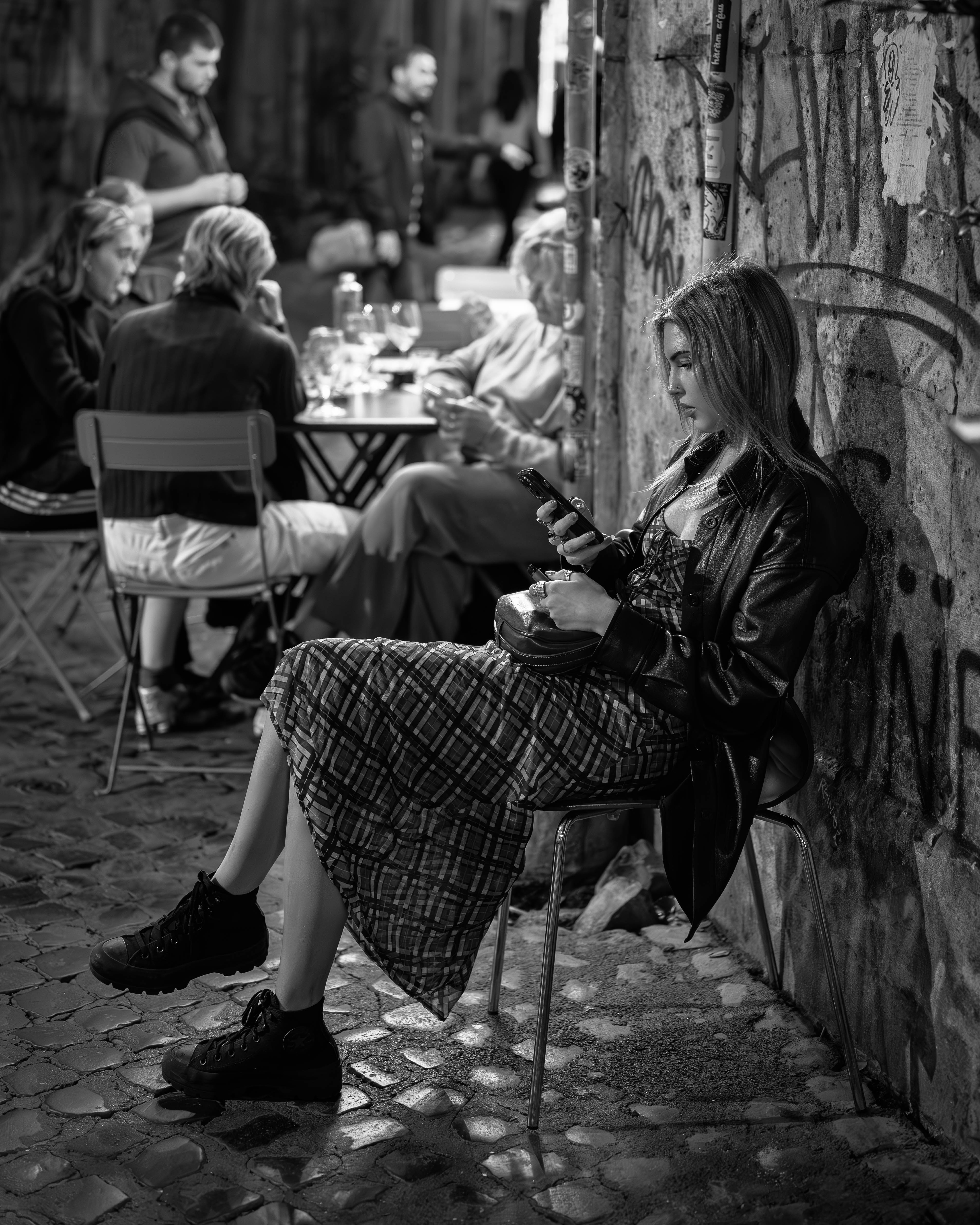 Väldigt fint foto av henne som sitter där med tändaren och mobilen. Har hon nyss rökt månntro? Hon måste bara kolla mobilen först, ska kanske sluta upp med kompisar, avslappnad ser hon ut att vara. Men att även kvinnan i sällskapet sitter med mobilen är inte så trevligt. Jag har sett folk på firanden som jämna födelsedagar och bröllop sitta och fippla med mobilen. Dålig stil. Din bild berättar mycket och väcker tankar, sånt är du väldigt bra på.