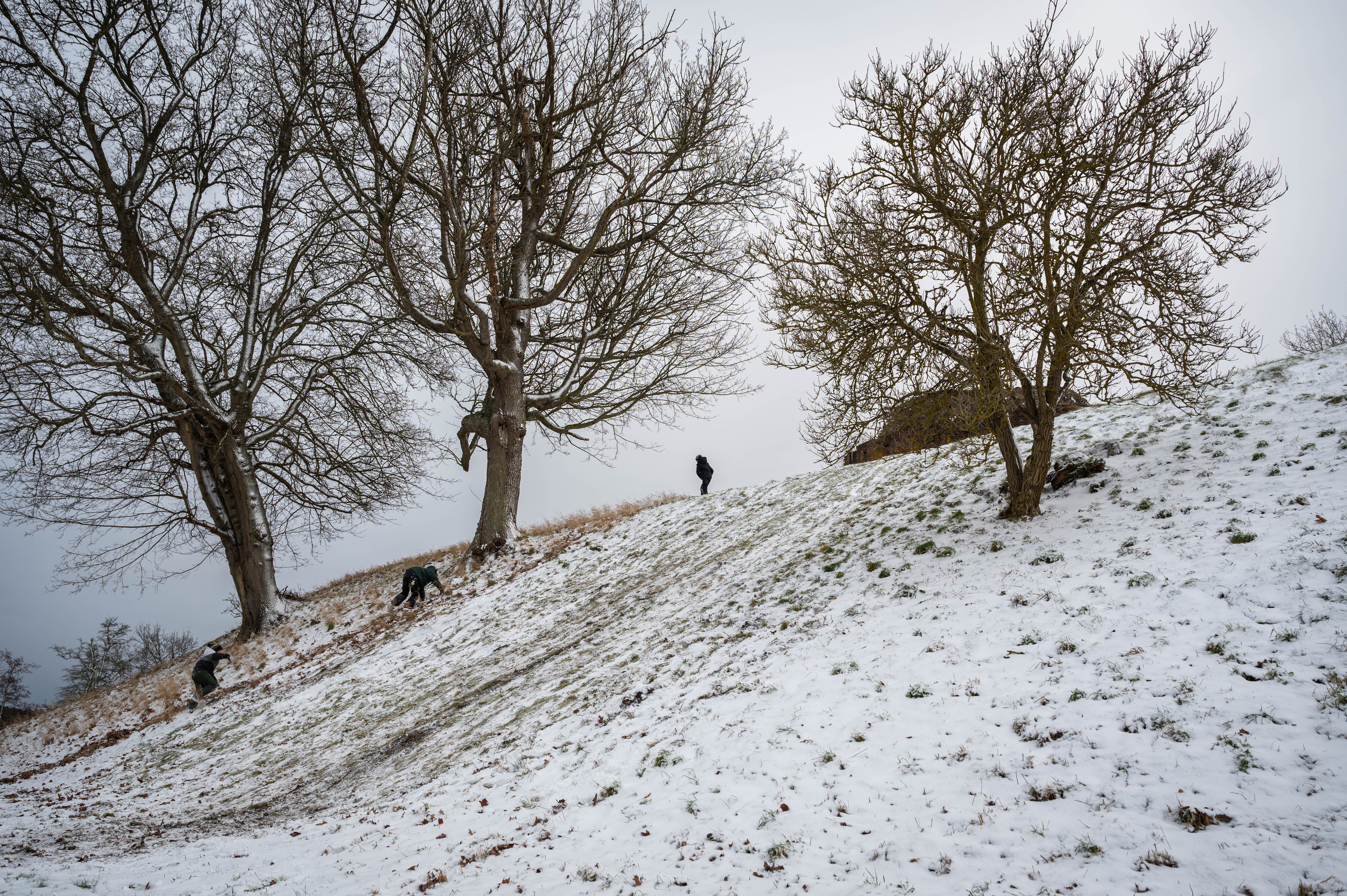 2. Oj, vilken rolig bild, ordentlig uppförsbacke för barnen som kryper. Jag ser på de snöiga bakarna att de åker på rumpan och blir lite fundersam, det är bra lite snö och hmm, byxorna nöts.