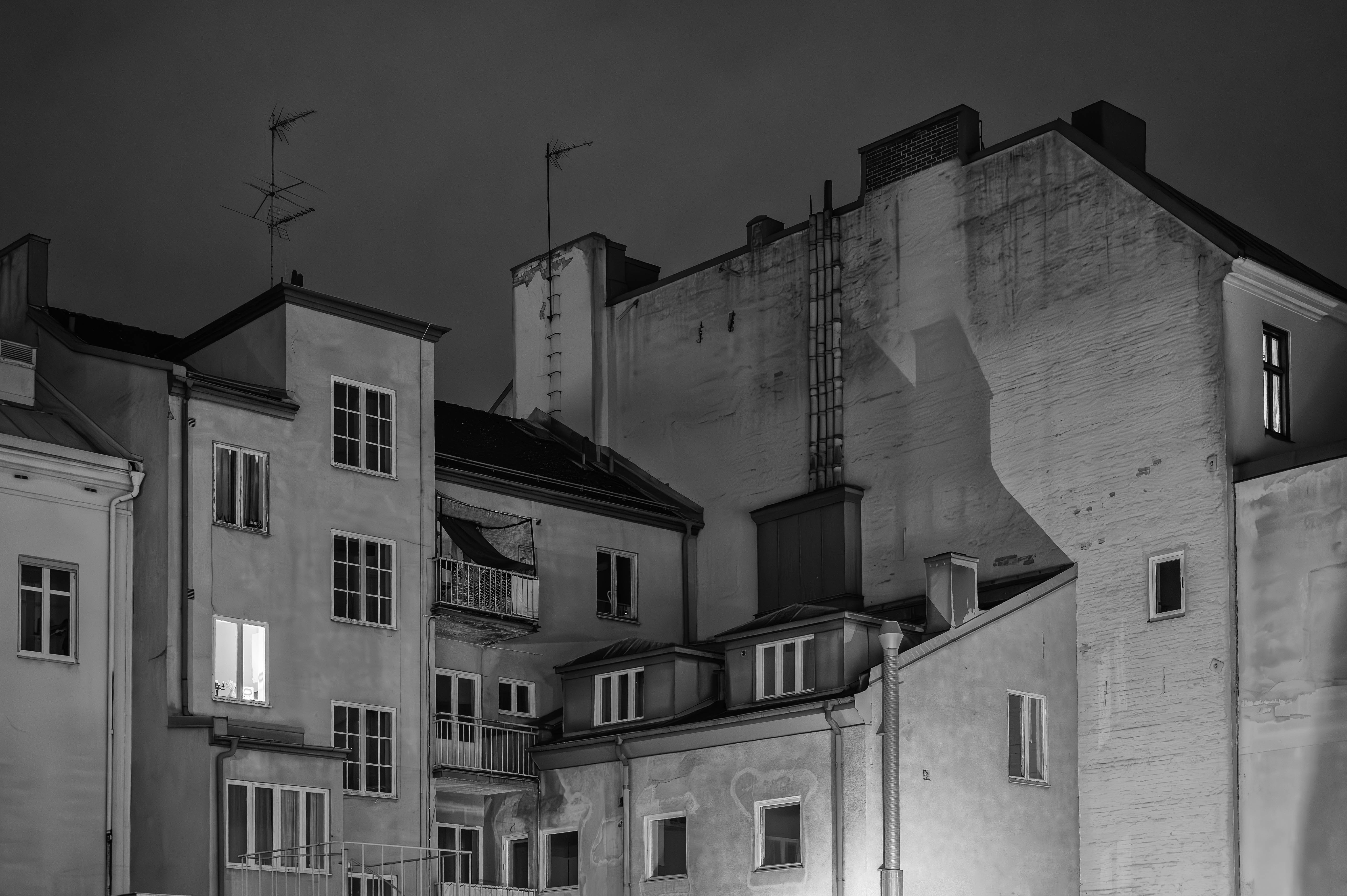 1. Tack 🙂 Jag vet faktiskt inte vad det är eller möjligen har varit, men tror faktiskt att det är bostäder. Om man tittar närmare på det vänstra upplysta fönstret, så står där bl a en ljusstake och en vas med blommor. Den översta balkongen med, där tänker jag att det bor någon som har fåglar eller kanske en katt.